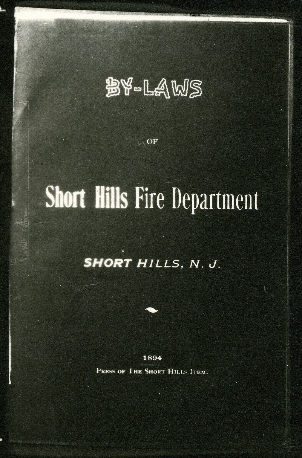 Short Hills Fire Dept Bylaws Cover