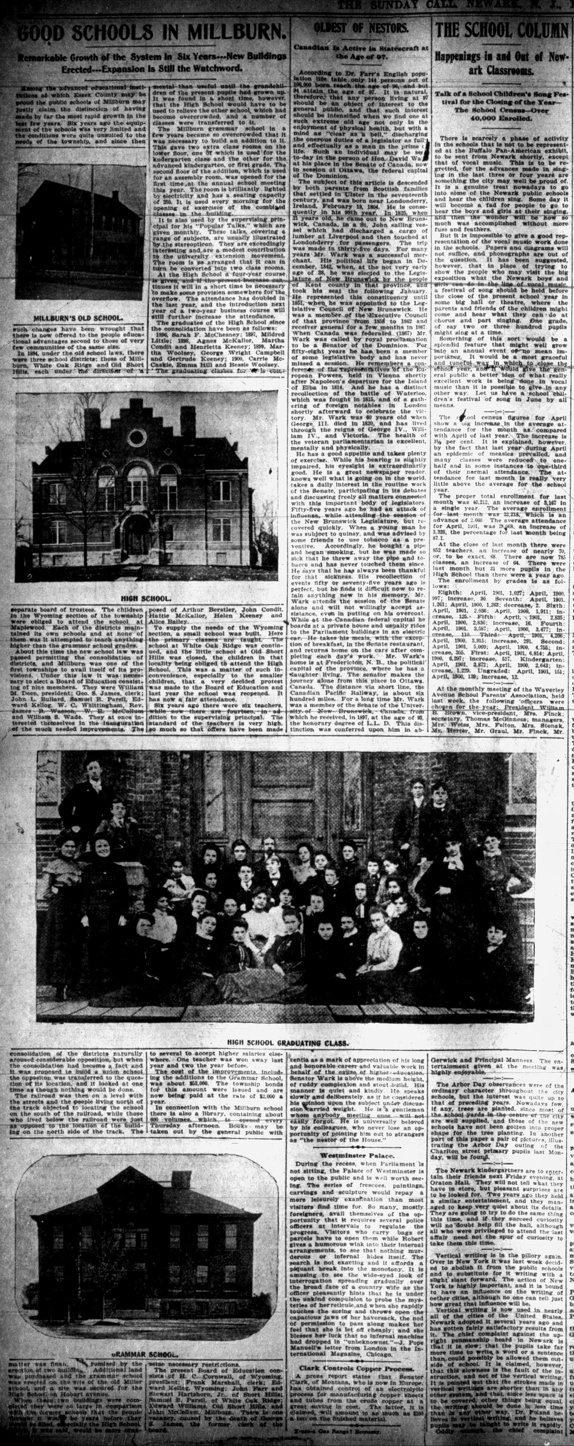 The photograph, which shows the graduating class of 1901, appeared in an article about Millburn school expansion in the Newark Evening News, May 12, 1901.Dimensions