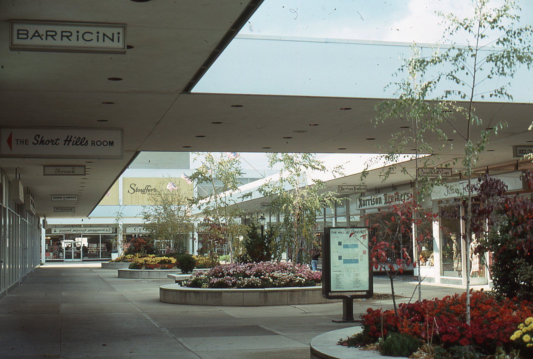 Photographs of the Interior Court of the Mall at Short Hills taken by Owen Lampe in November 1976. Among the stores visible in the photographs are: Brentano's, Barricini Candy, Tepper's, Harrison Brothers, The Short Hills Room, Ferons, George P. Griffith, W & J Sloan, Roger Kent, Jugtown Mountain Smokehouse, Stouffer's, F.A.O. SchwartzPhotograph Details