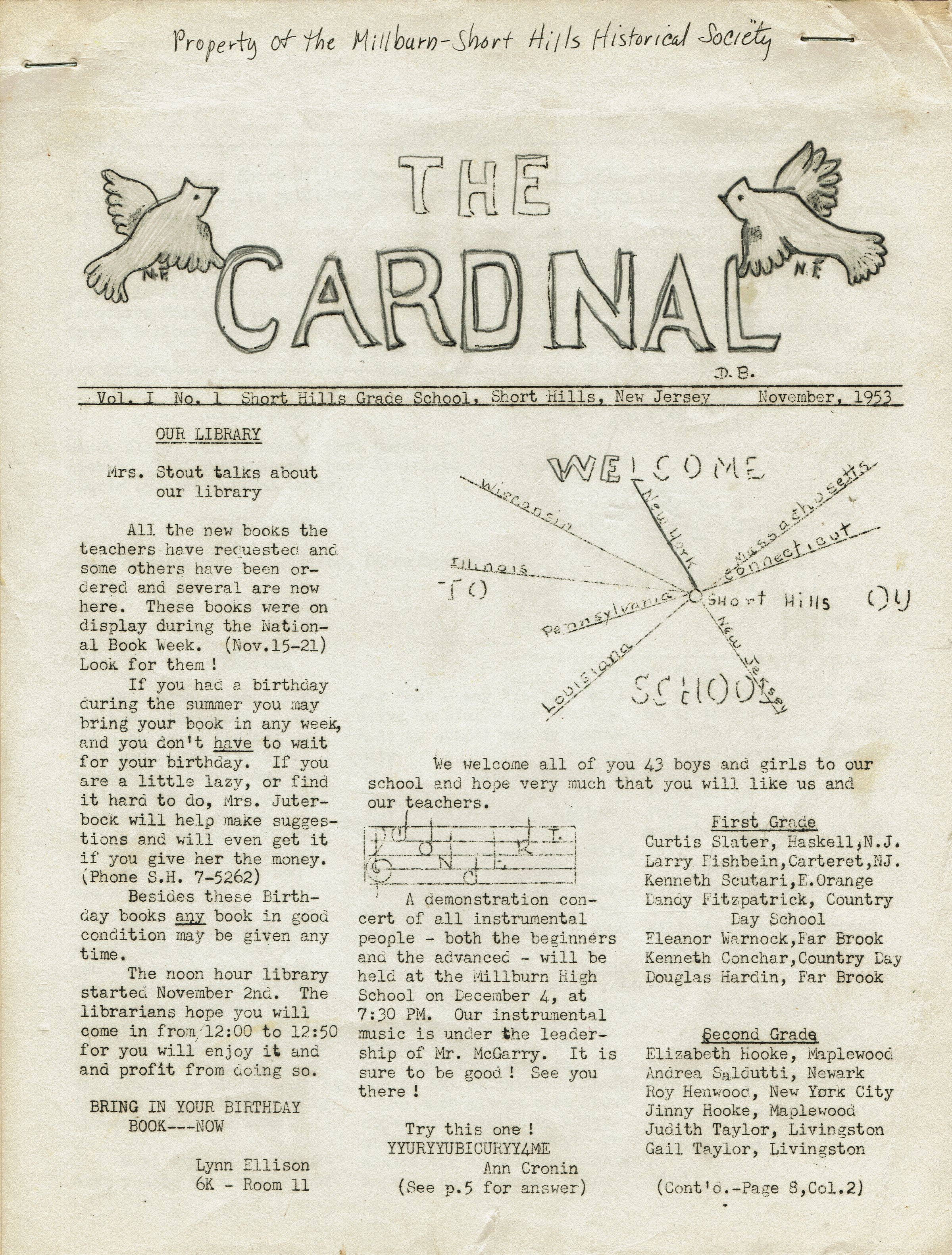 Short Hills School: Cardinal Newsletters, 1953-1955Entry/Object ID