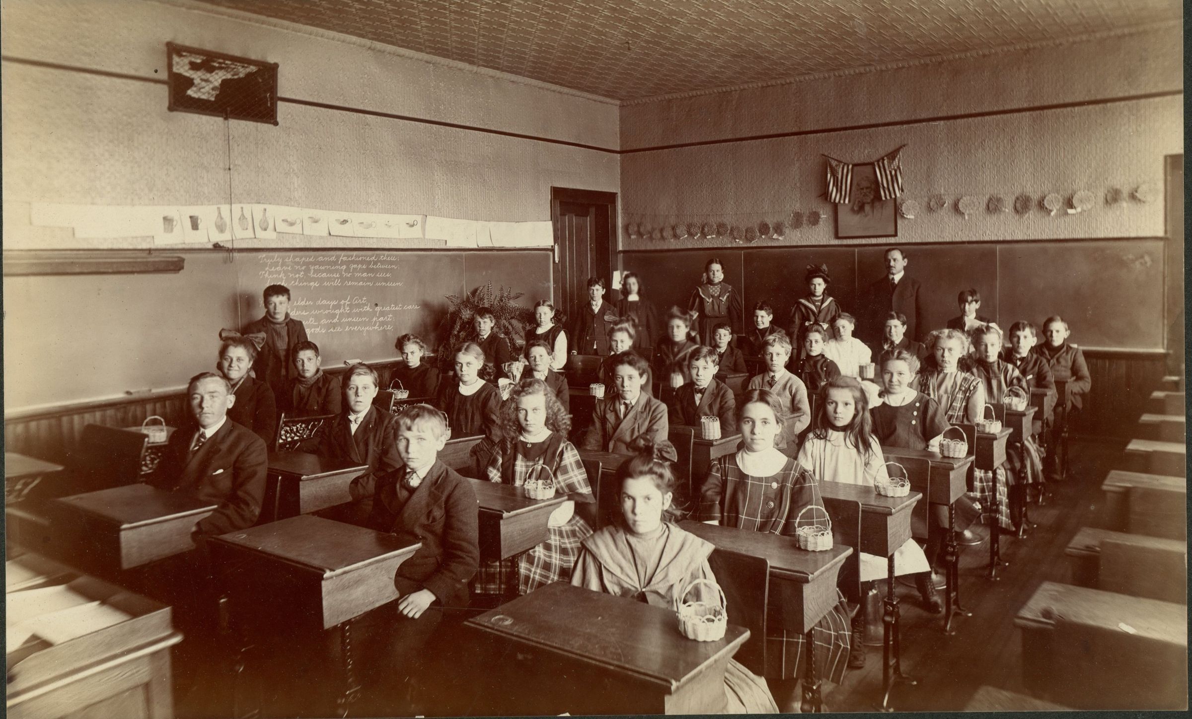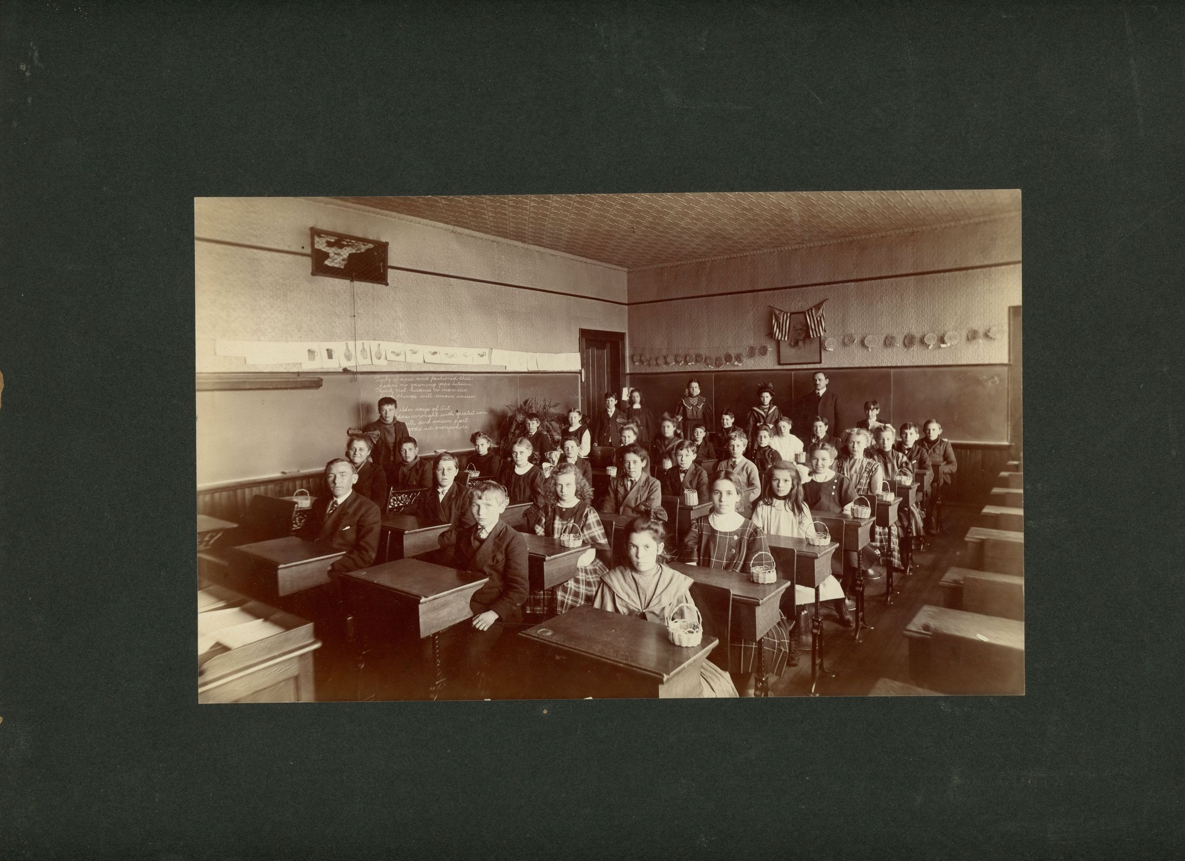 Photograph of a classroom at the Short Hills School with Bessie A. Bosworth from c. 1908.Acquisition