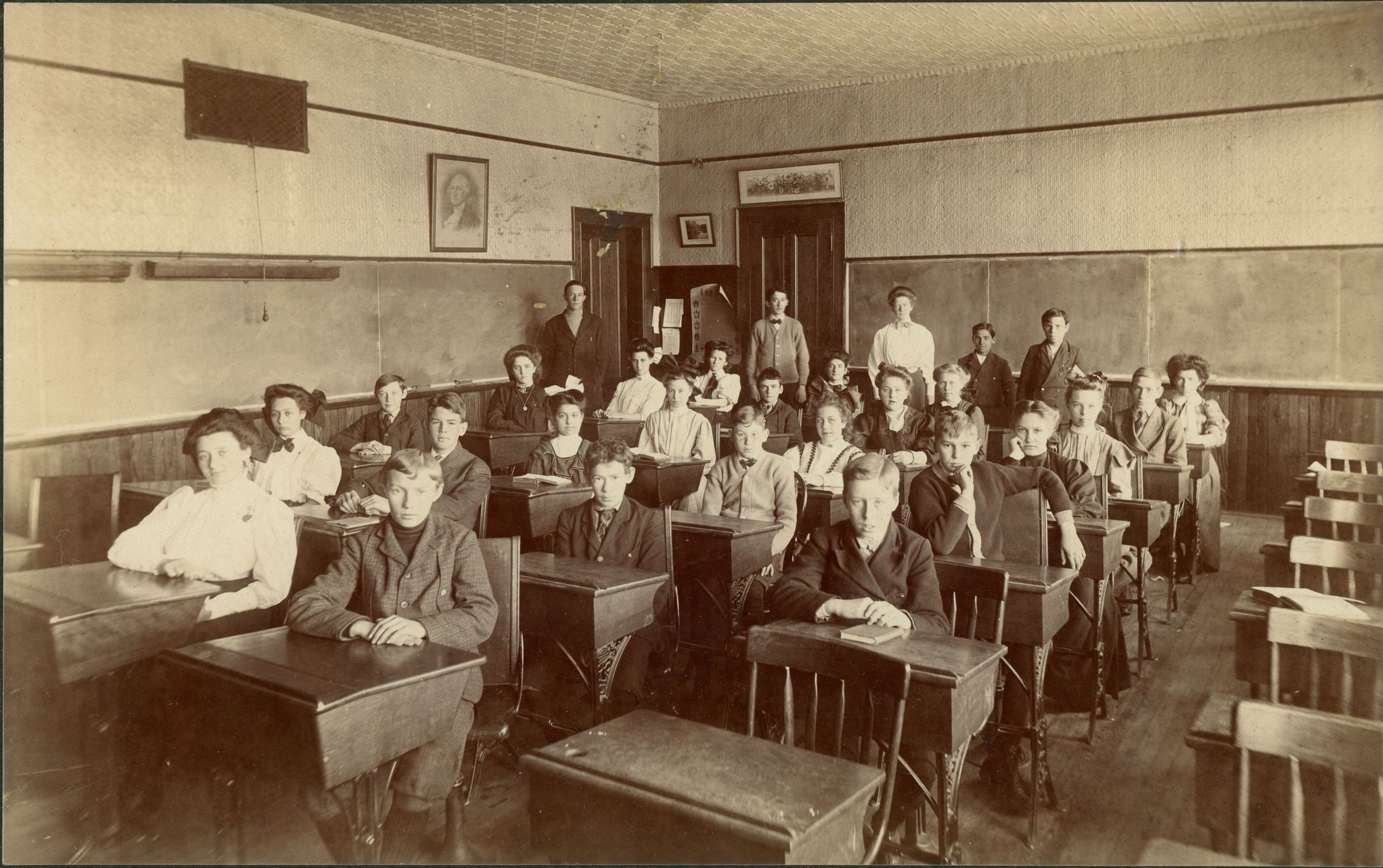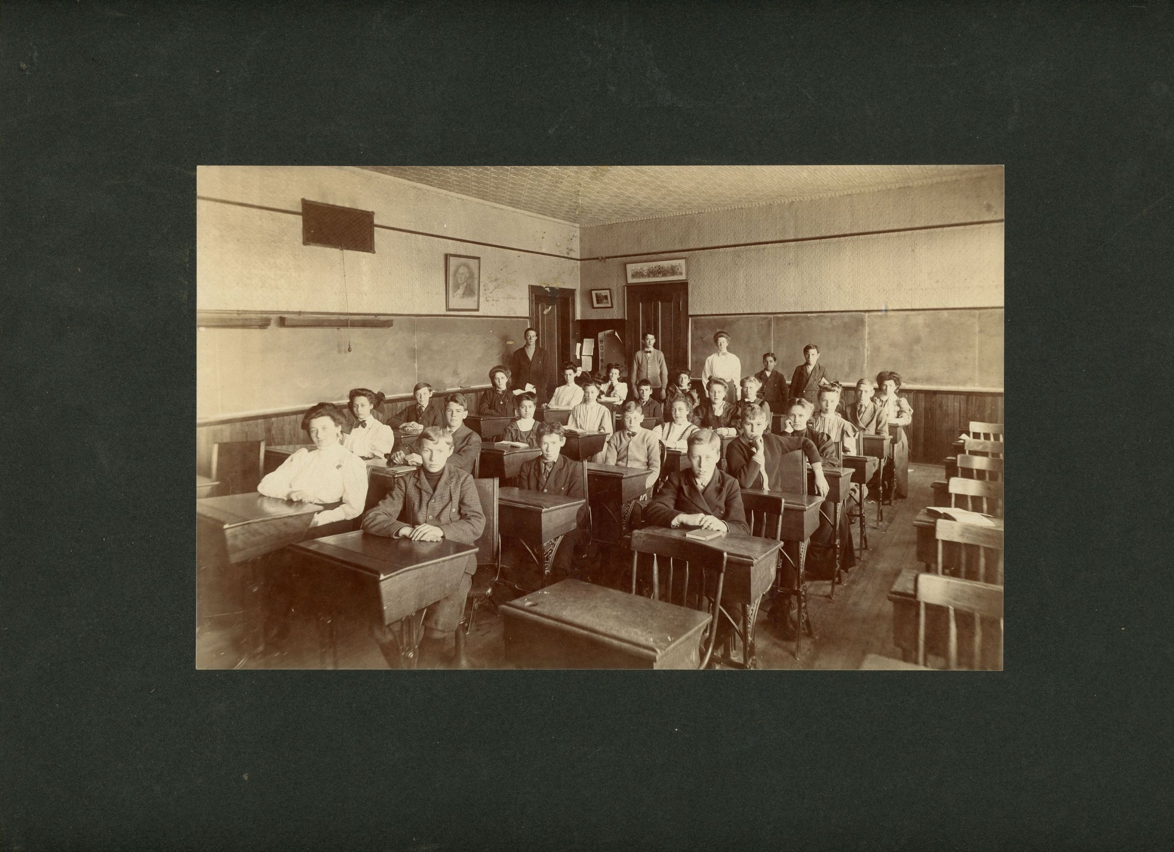 Photograph of a classroom at the Short Hills School on Hobart Avenue with Guy R. Bosworth from c. 1907. Guy Bosworth would have been 14 years old at the time.Acquisition