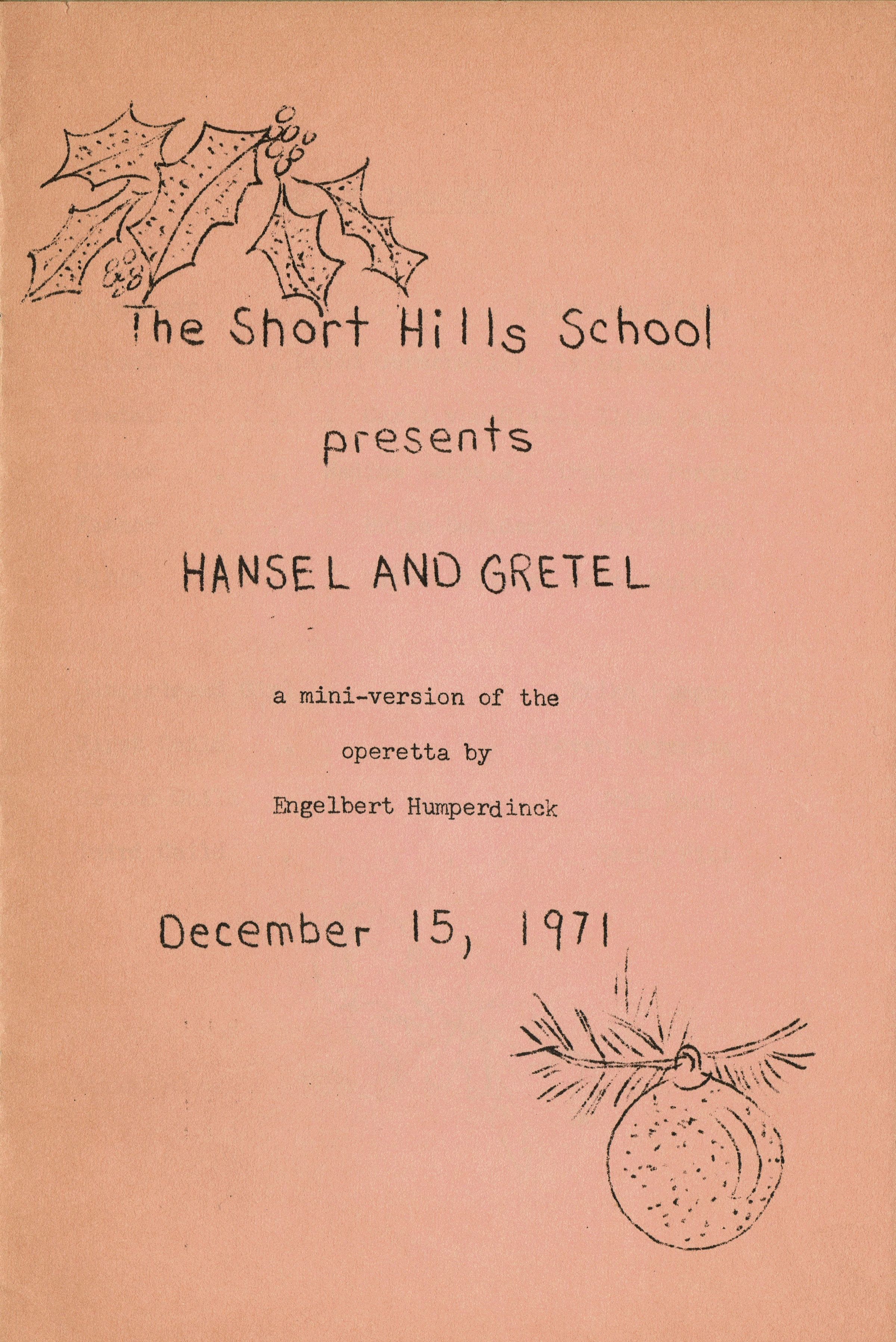 Short Hills School: Hansel and Gretel Program 1971Entry/Object ID