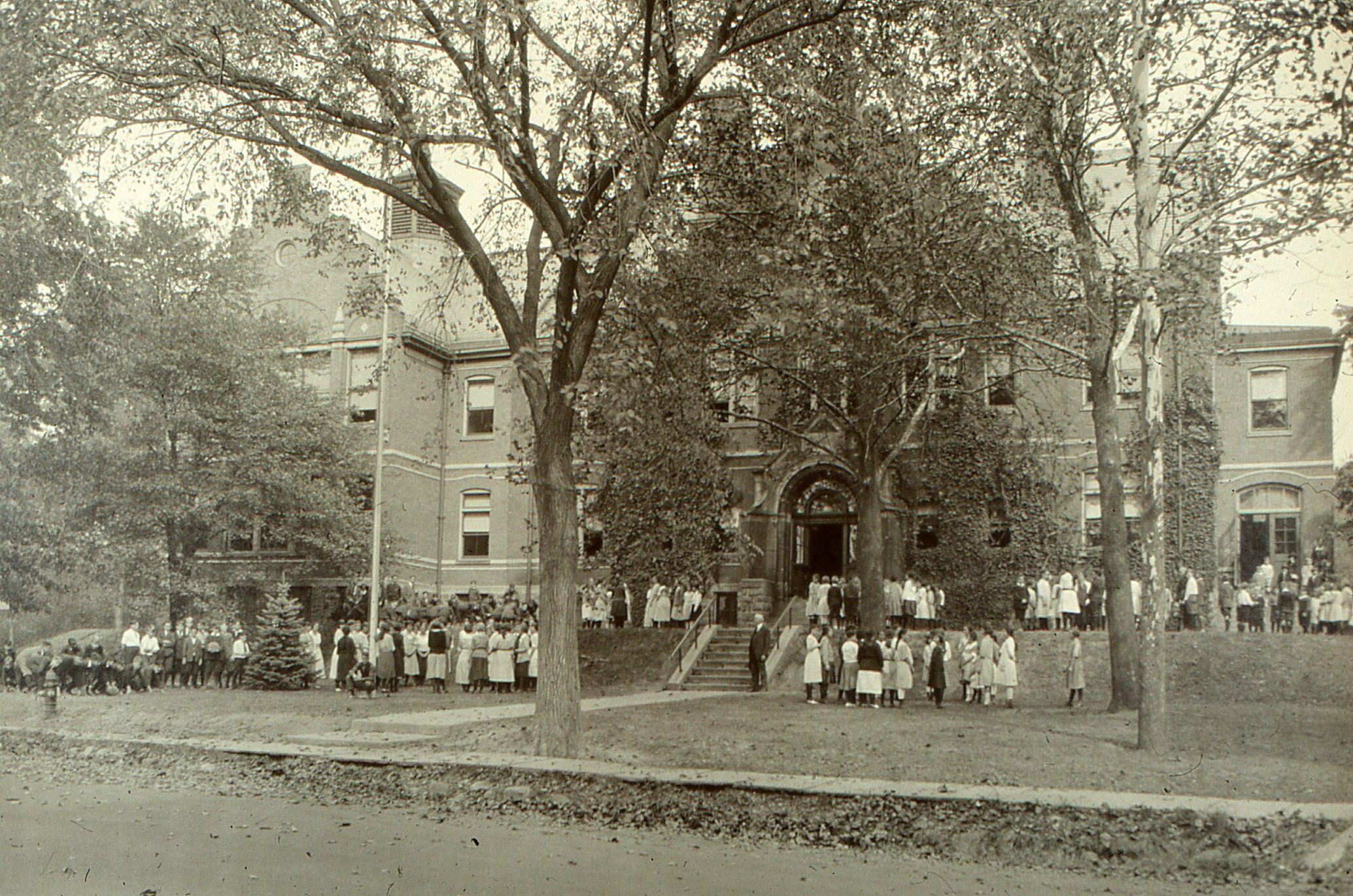 Photograph of the Short Hills School on Hobart Avenue after the first addition. The addition is the building with the tower. Image taken from the archives of the Millburn Board of Education.Photograph Details