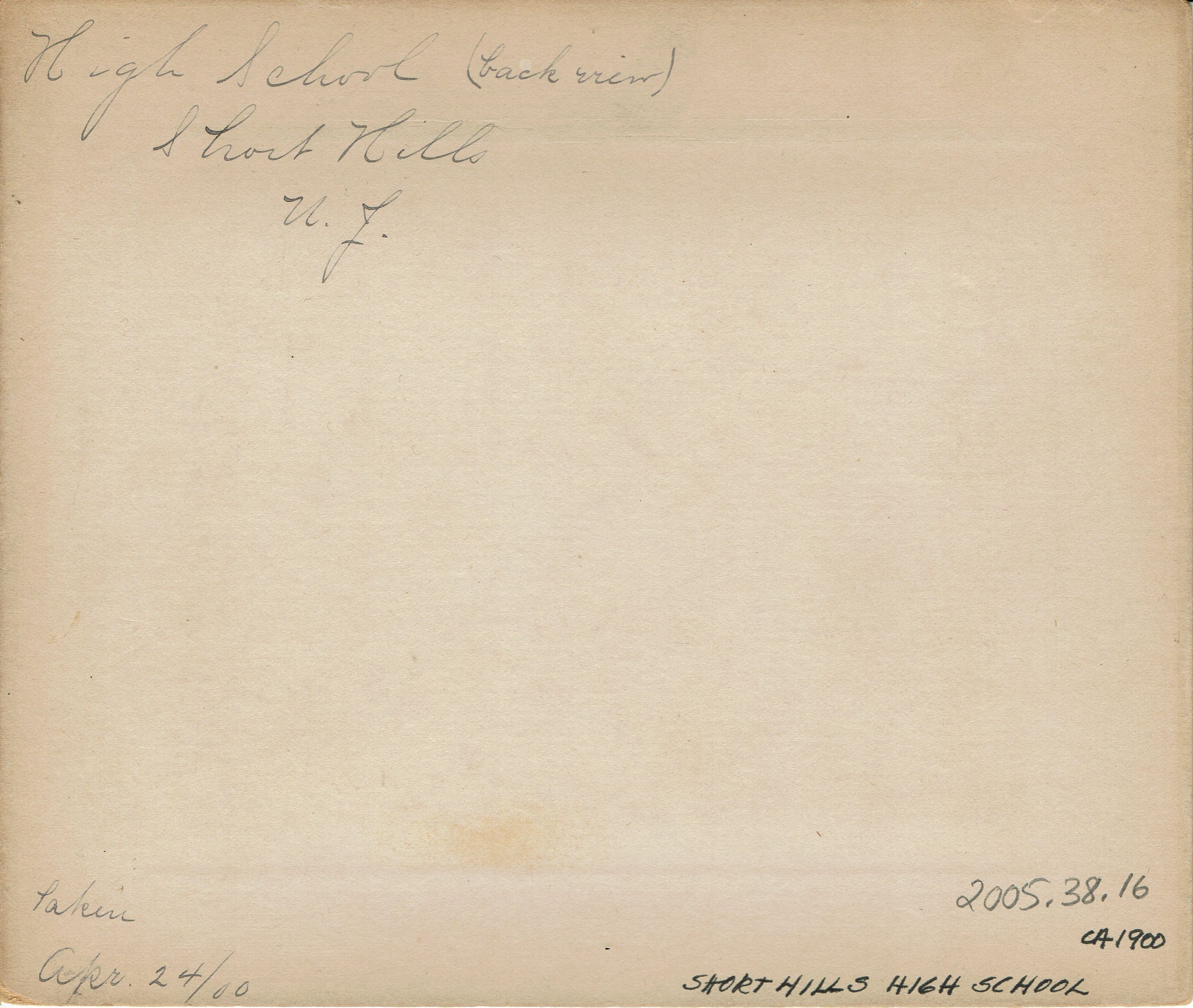 Short Hills School: Short Hills High School Back, 1900Entry/Object ID