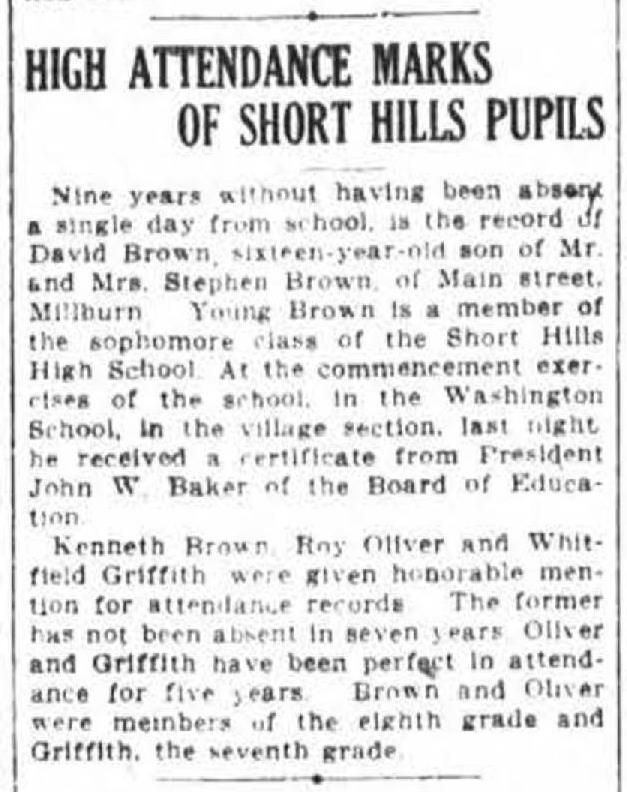 Photograph of the High School Graduating Class at the Short Hills School on Hobart Avenue from 1913. Students pictured include: P.K Meeker, Emerson McFadden, Bill Smith, Joe Rimback, (?) Tichenor, Margaret Marshall. The graduation was held on June 26, 1913.Acquisition