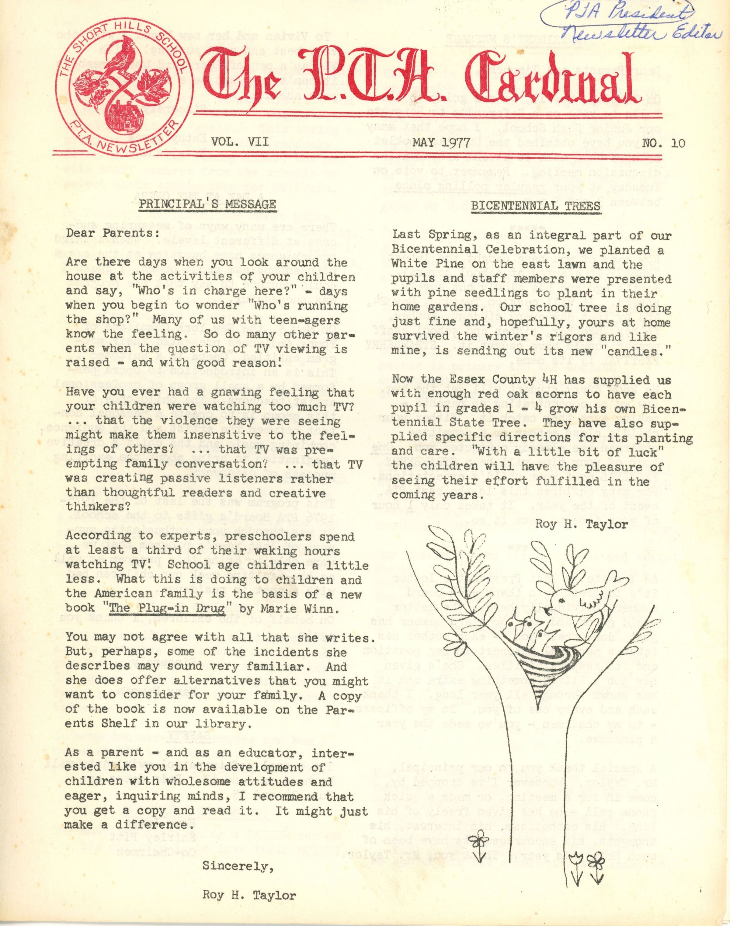 Short Hills School: Short Hills School PTA Cardinal Newsletters, 1977-1978