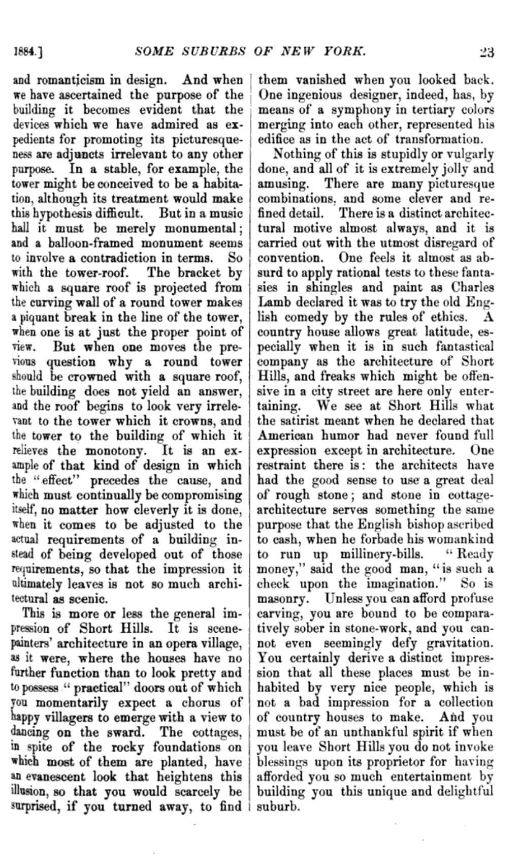 Short Hills: Some Suburbs of New York, Lippincott's Magazine, 1884Entry/Object ID
