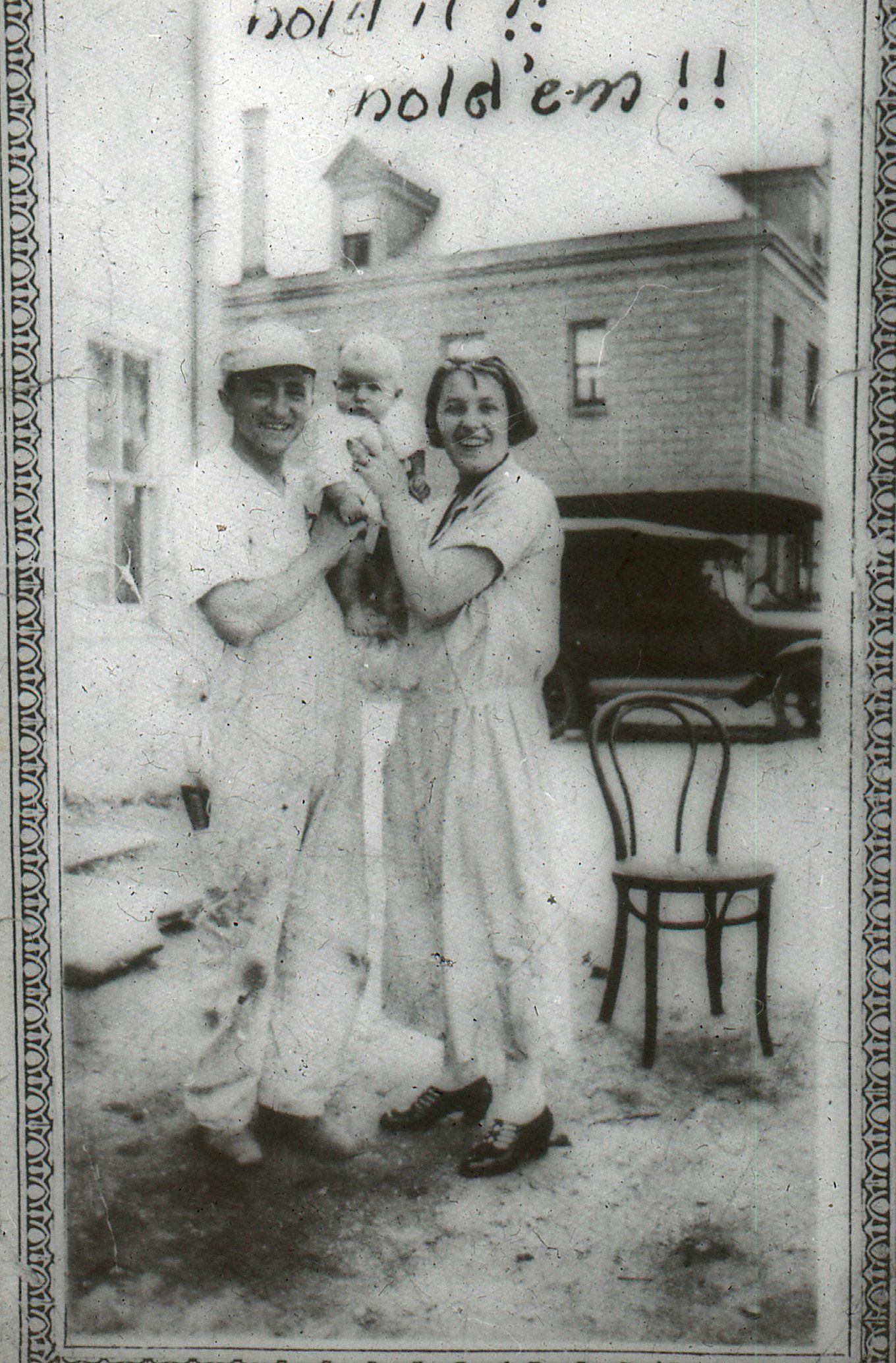 Photograph of Lou and Rose Silbersher holding Marvin in the backyard of their home at 347 Millburn Avenue, 1924.Photograph Details