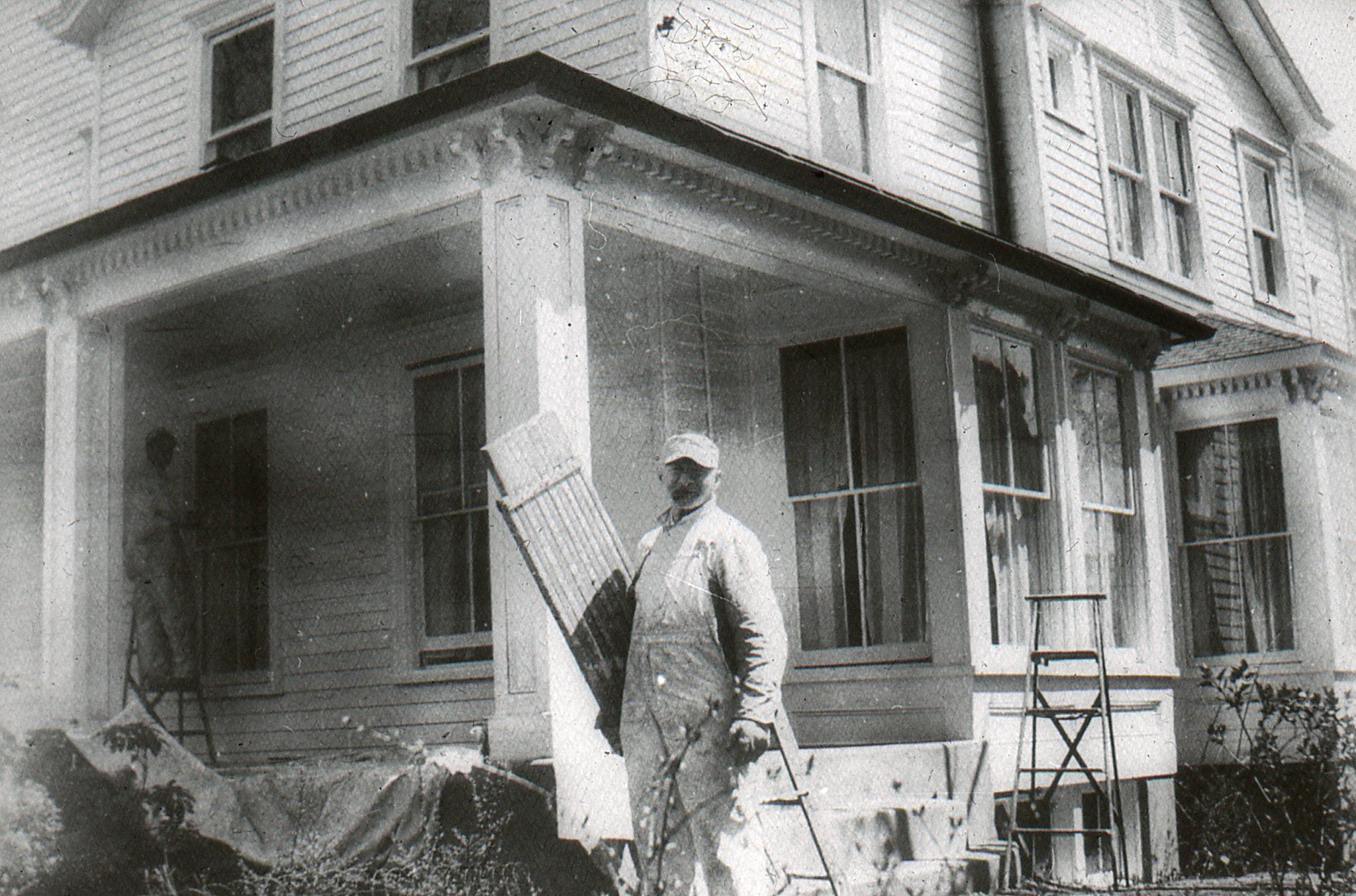 Photograph of Lou Silbersher with his house painting gear (undated).Photograph Details