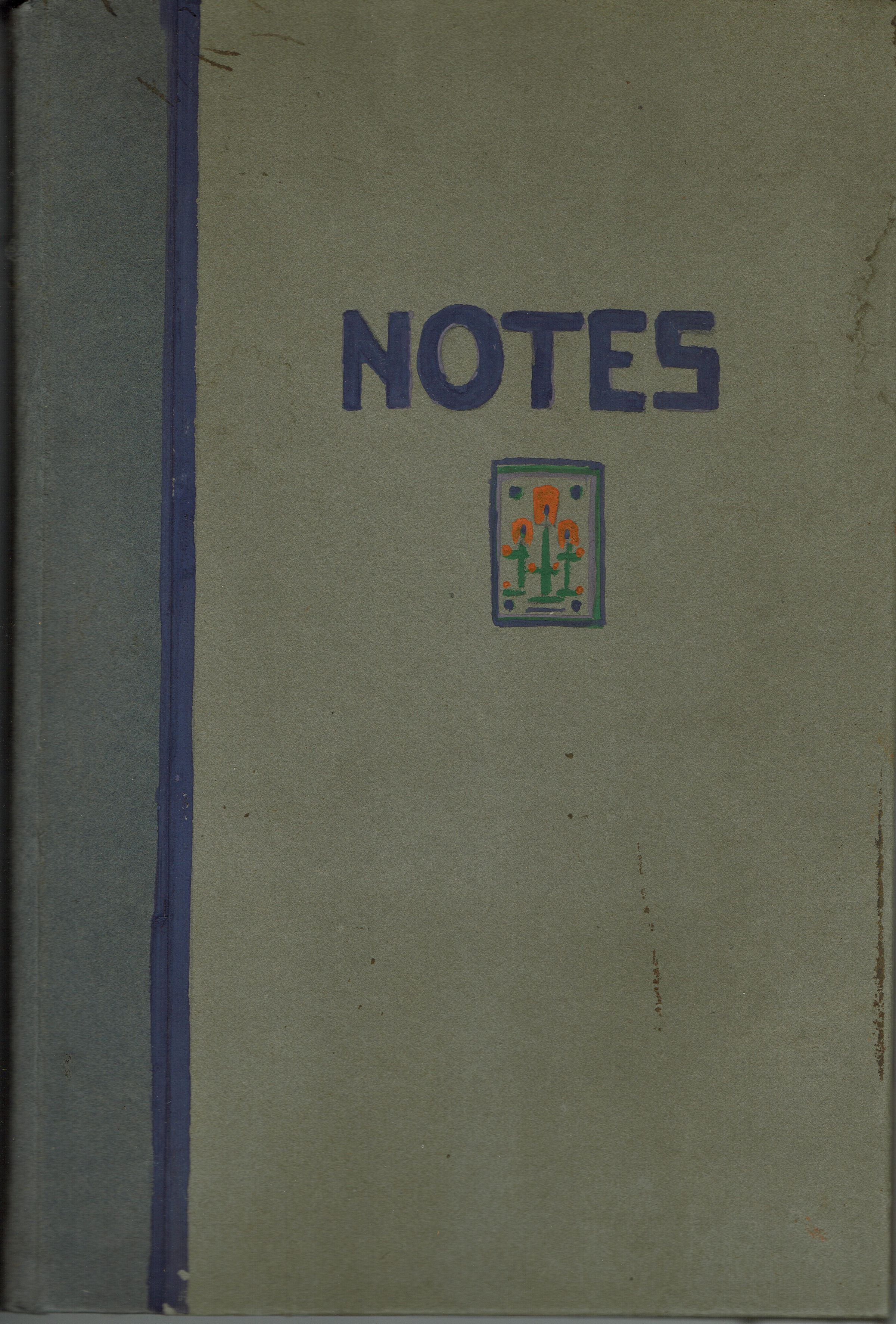 Handmade decorative notebook with blank pages presumably made by Bonnie Snow. Notebook is unused, with decorated pastedown endpages.Collection