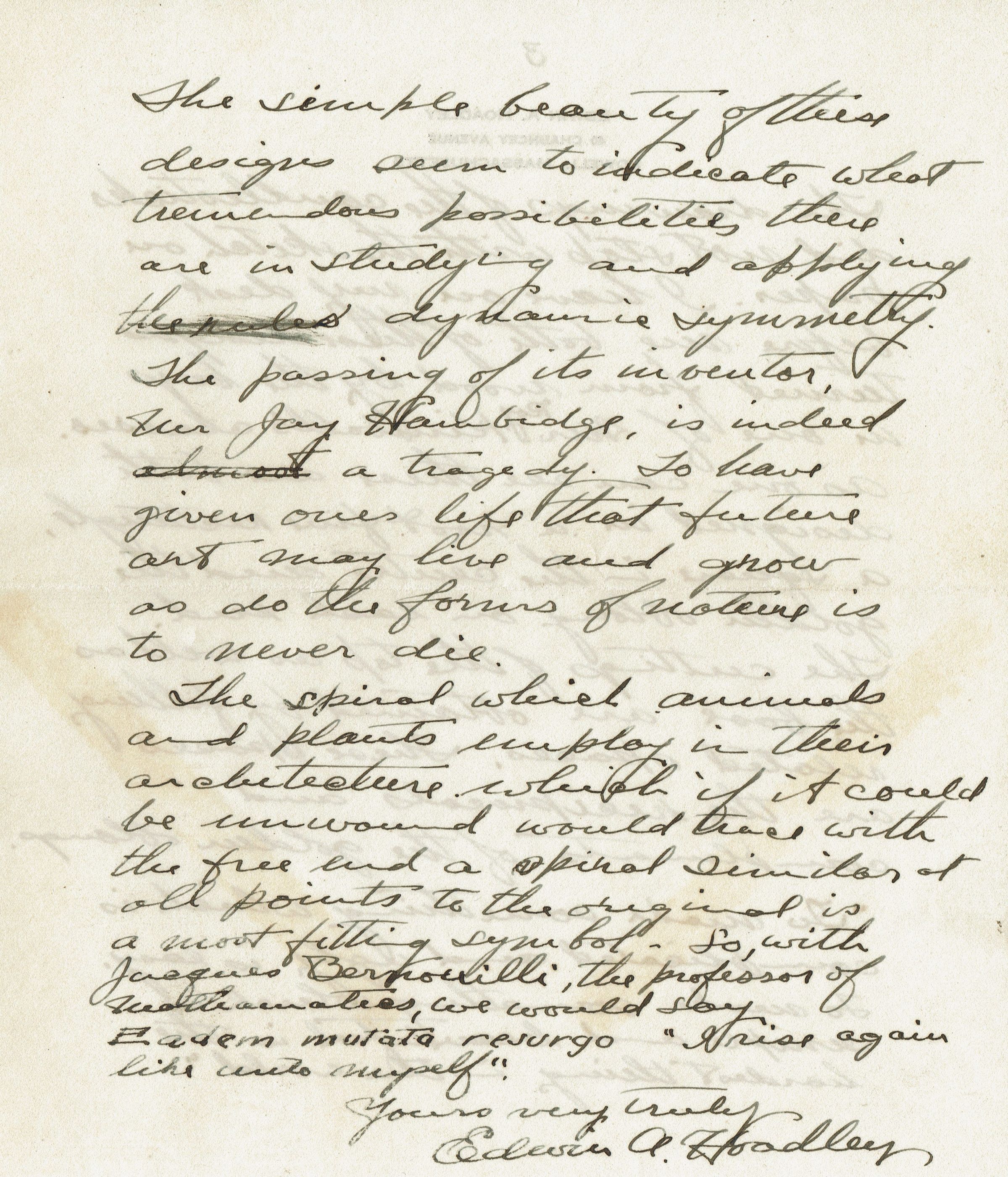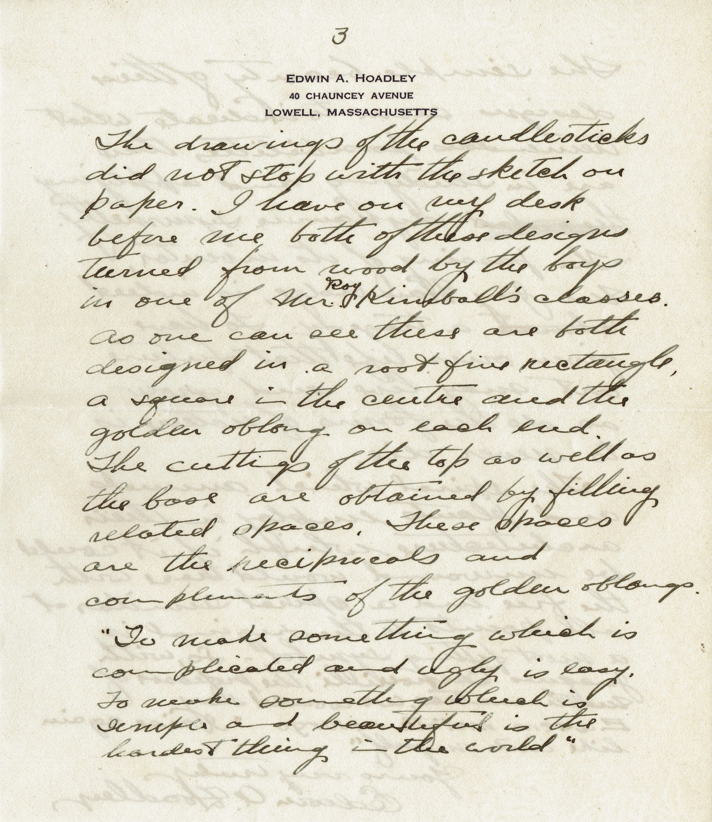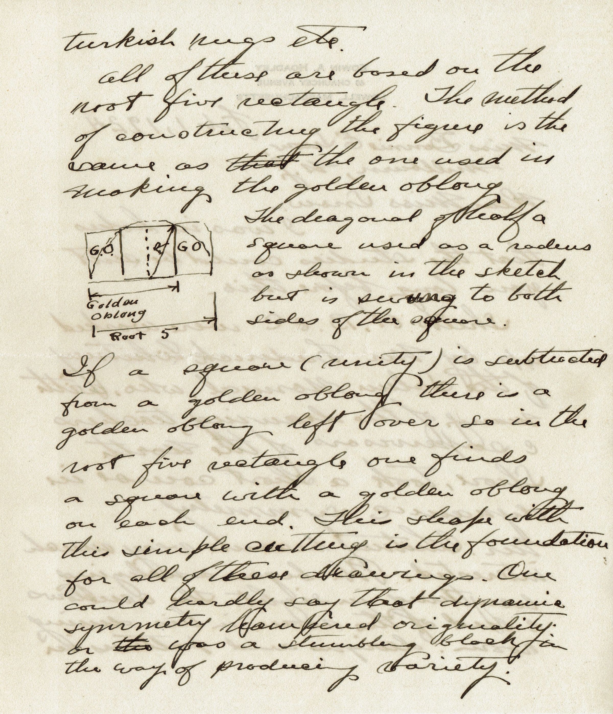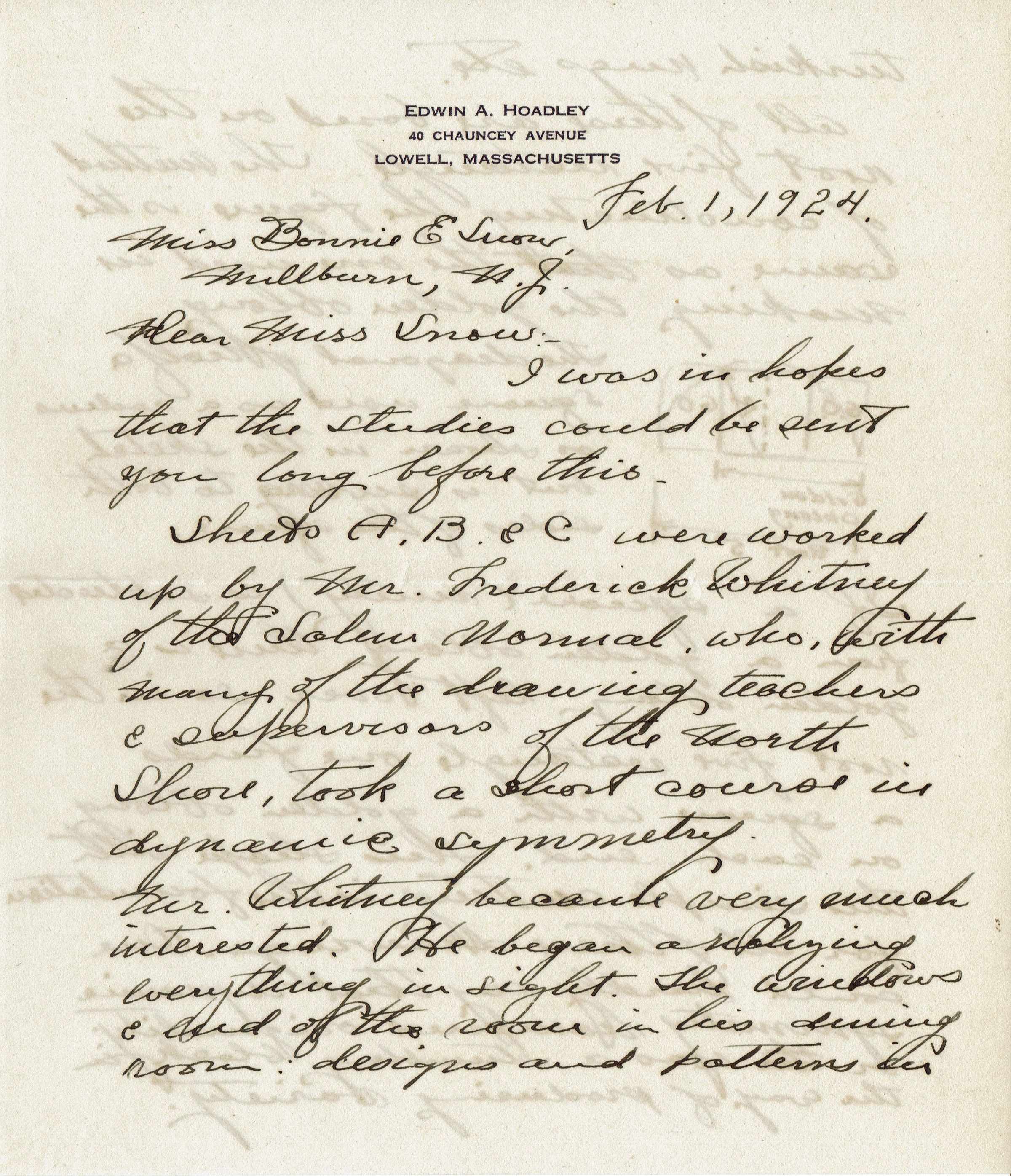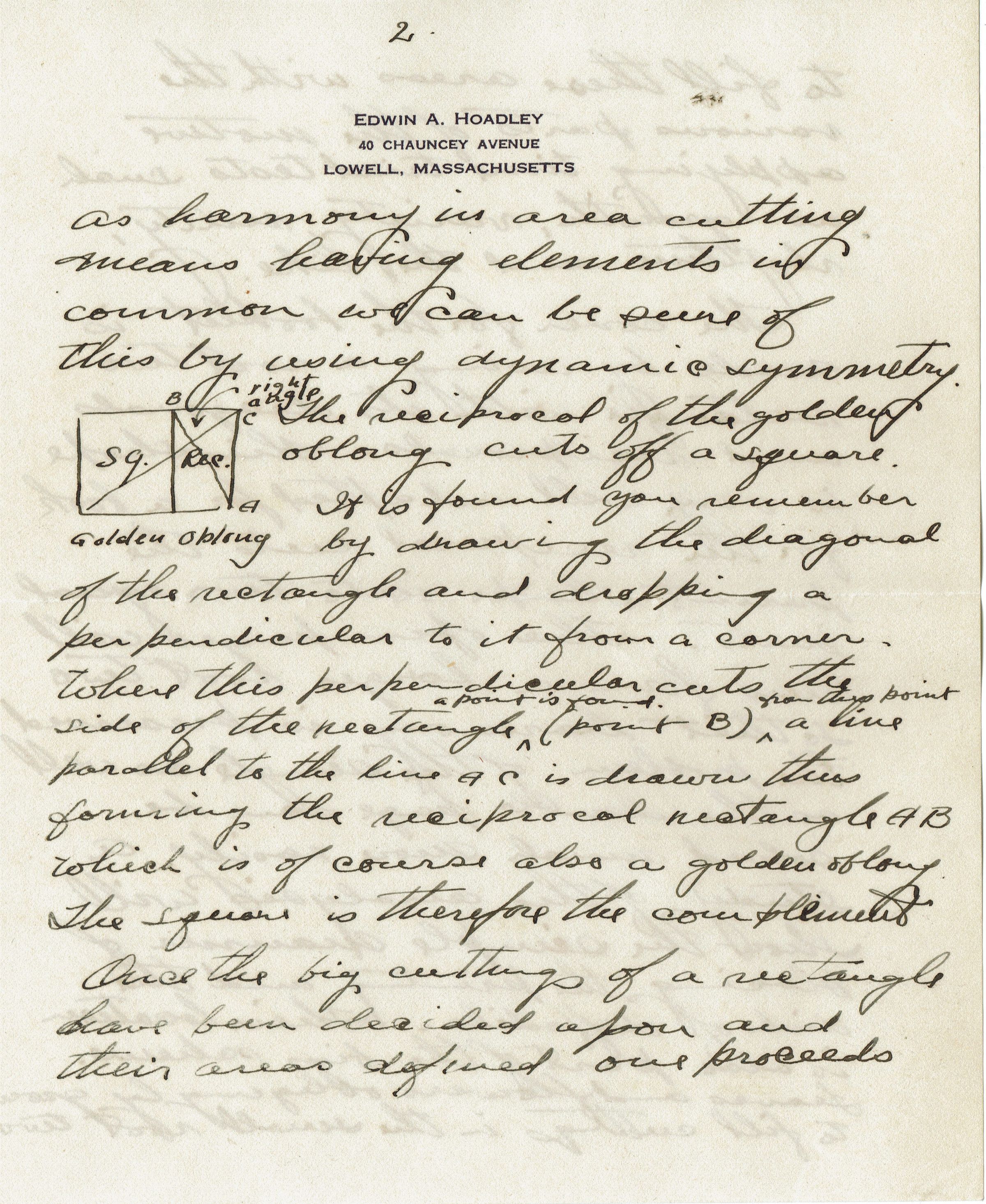 6 page letter, sketches and published pieces dealing with the design concept of Dynamic Symmetry from Massachusetts educator Edwin A. Hoadley to Bonnie Snow in February 1924.Collection