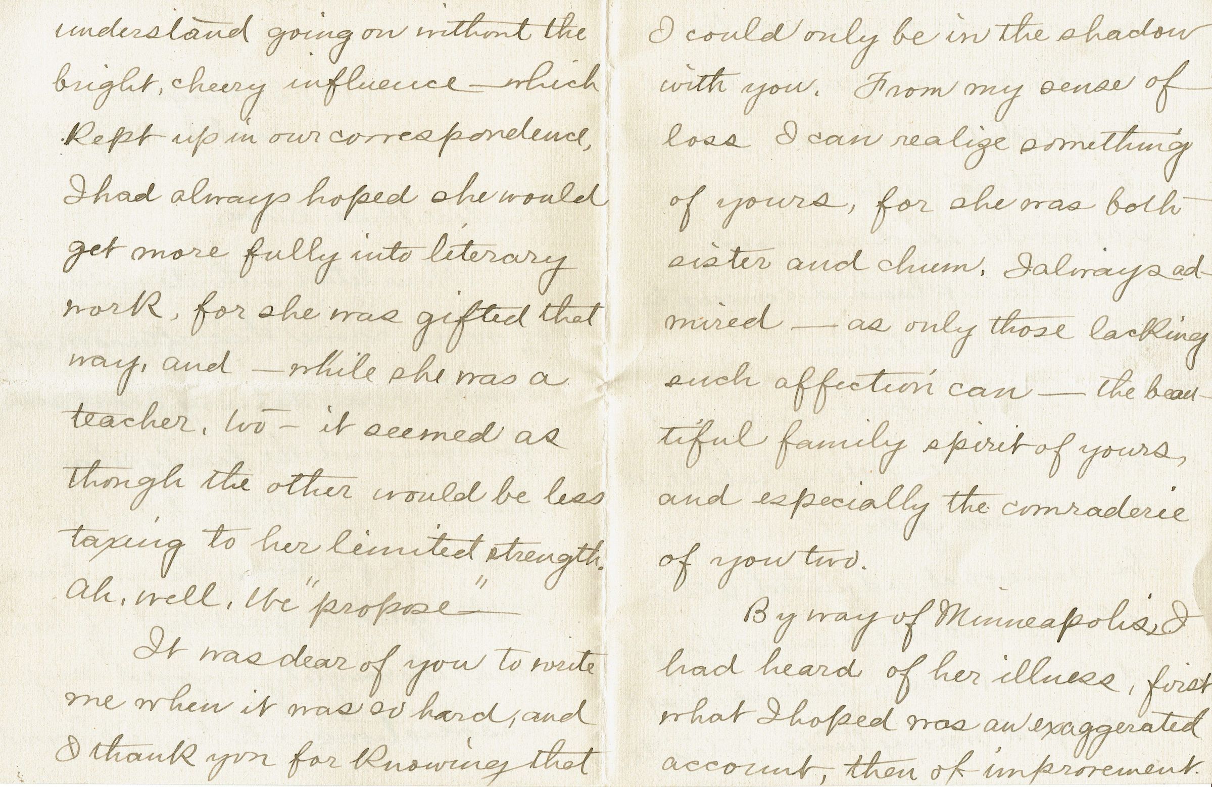 Unsigned 4-page handwritten letter to Bonnie Snow expressing sympathy over the death of the artist's sister, Winnie. Envelope is postmarked Lockport, NY, June 9, 1911.Collection