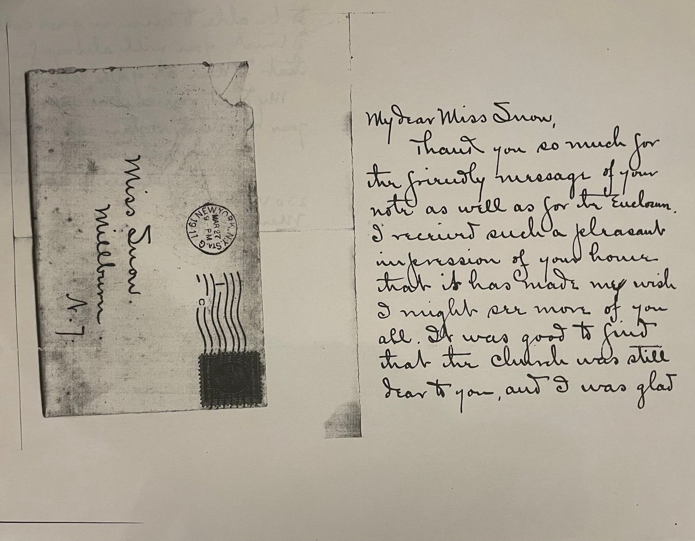 There is a scanned letter and envelope addressed to Bonnie Snow from author Julian Kennedy Smyth dated March 27, 1911. Smyth was a pastor, who also founded the Kennedy House for the Education of the Underprivileged in New York City.Acquisition