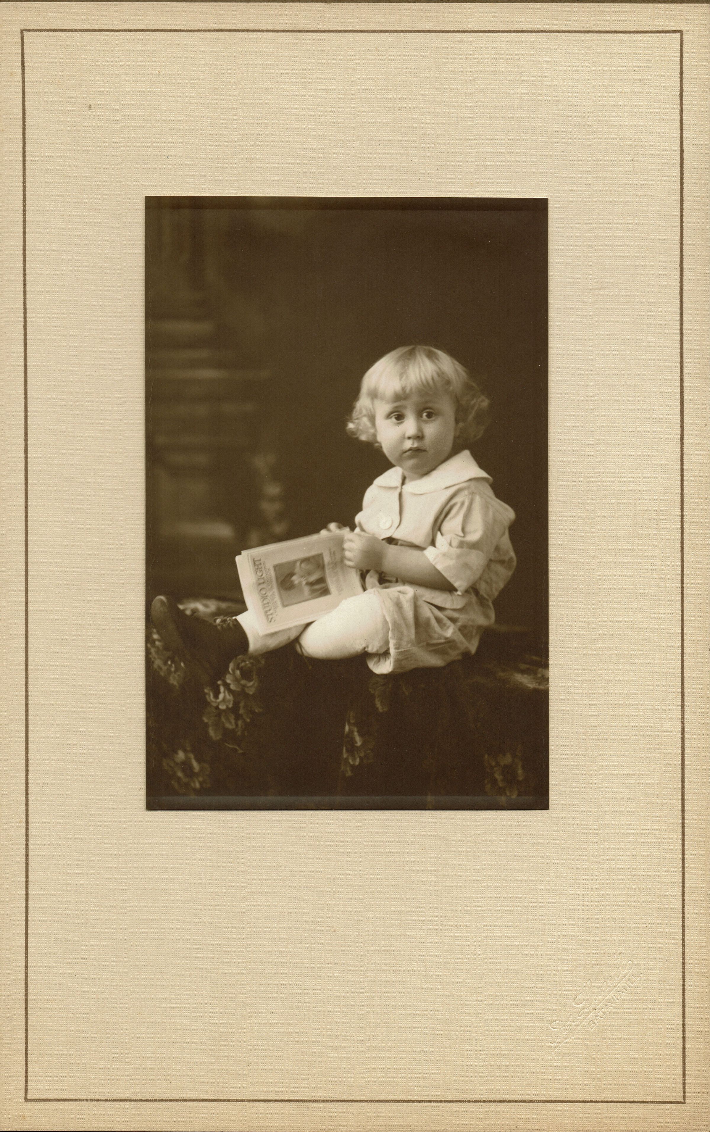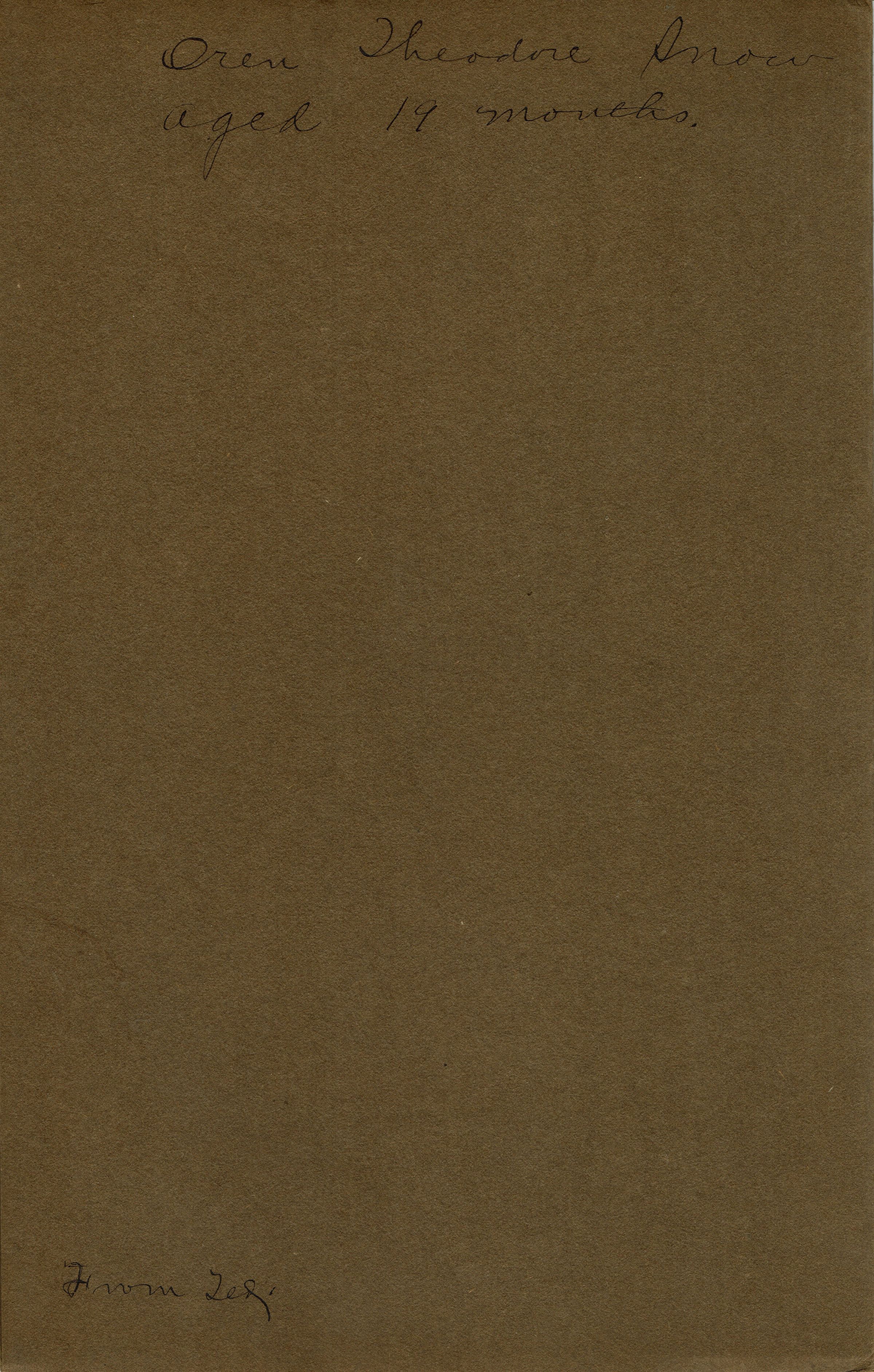 Photograph of Oren Theodore Snow mounted on cream paper with A. Lund, Batavia, Illinois embossed. Photograph is in a brown portfolio with protective tissue. Inscription on verso of portfolio identifies as Oren Theodore Snow, aged 19 months.Collection