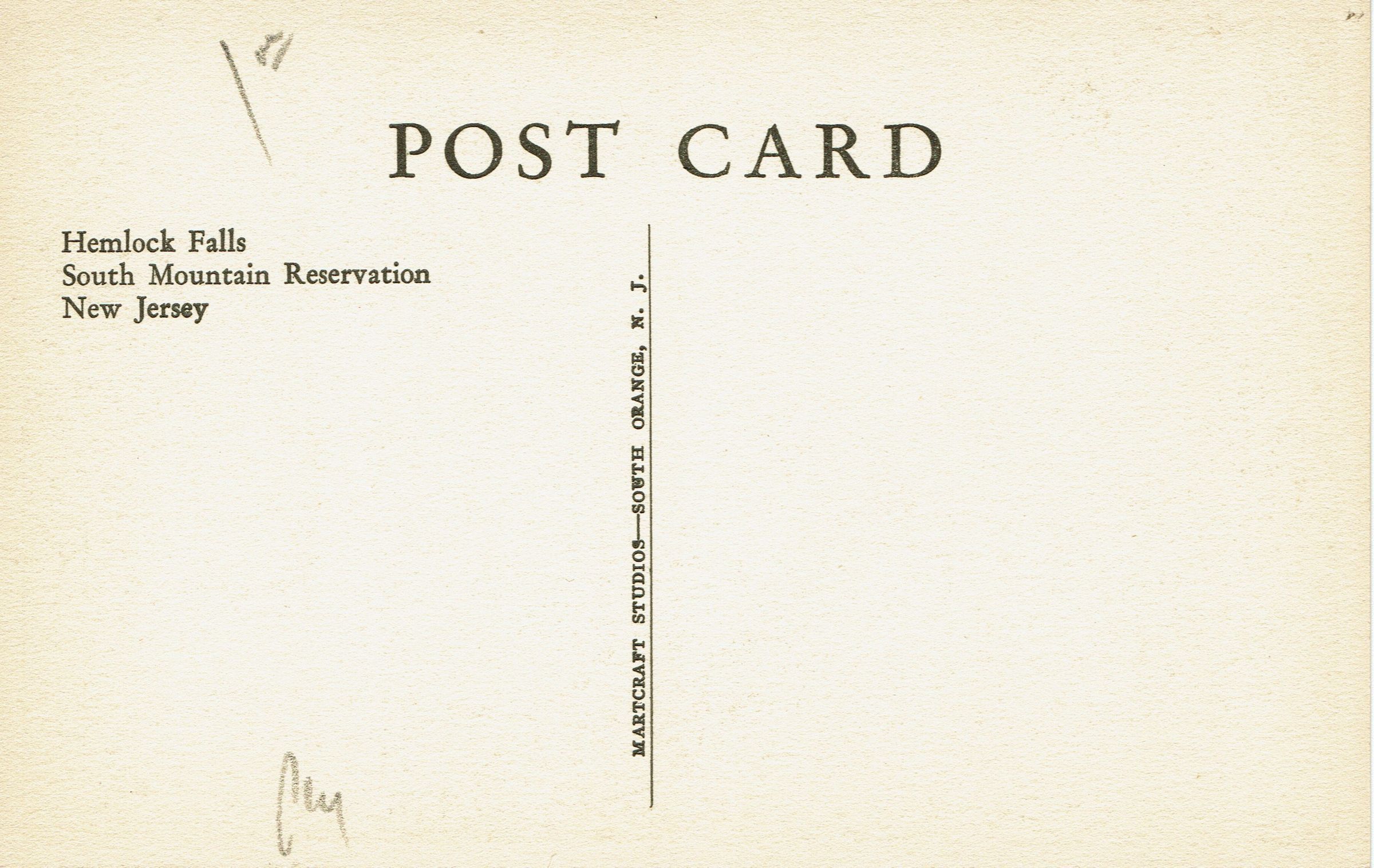 Postally unused B&W photographic postcard of Hemlock Falls in the South Mountain Reservation, N.J.Collection