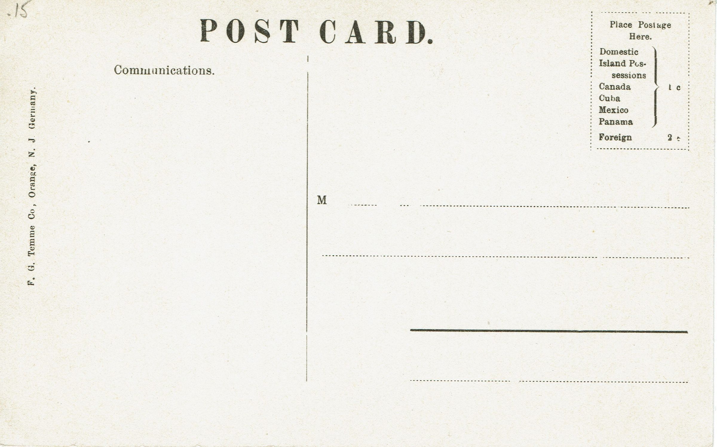 Divided Back (1907-1915)Place Published
