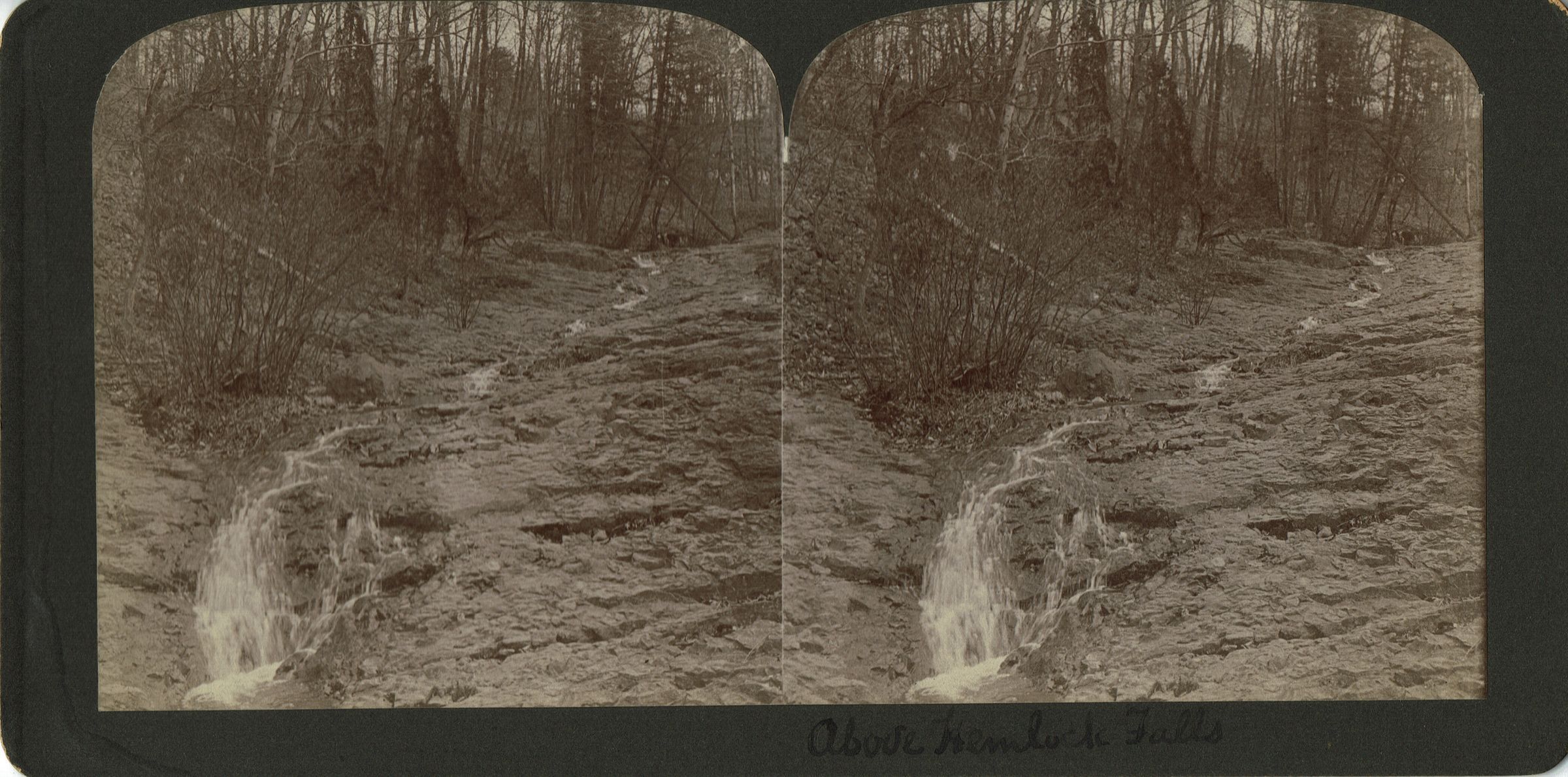Stereograph of Above Hemlock Falls in the South Mountain Reservation.