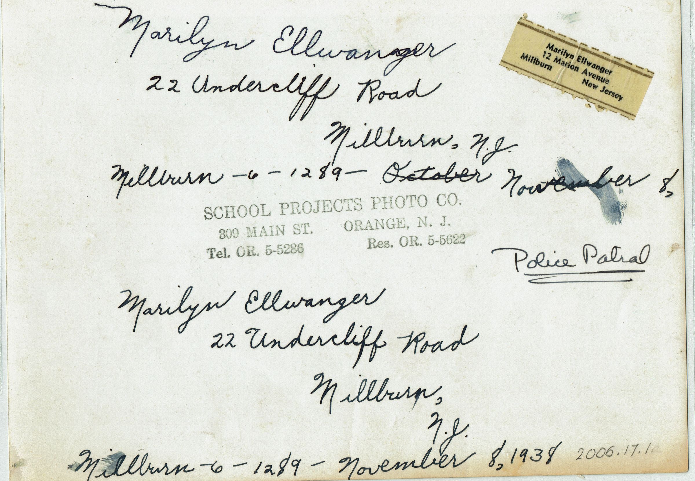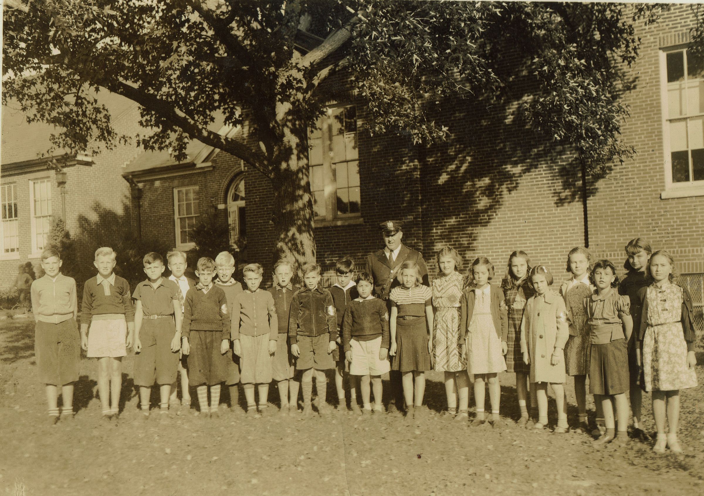 School photograph taken November 8, 1938 of the 5th Grade Student Police Patrol at South Mountain School. Photograph was in the collection of Marilyn Ellwanger, who was a student at SMS at the time.Acquisition