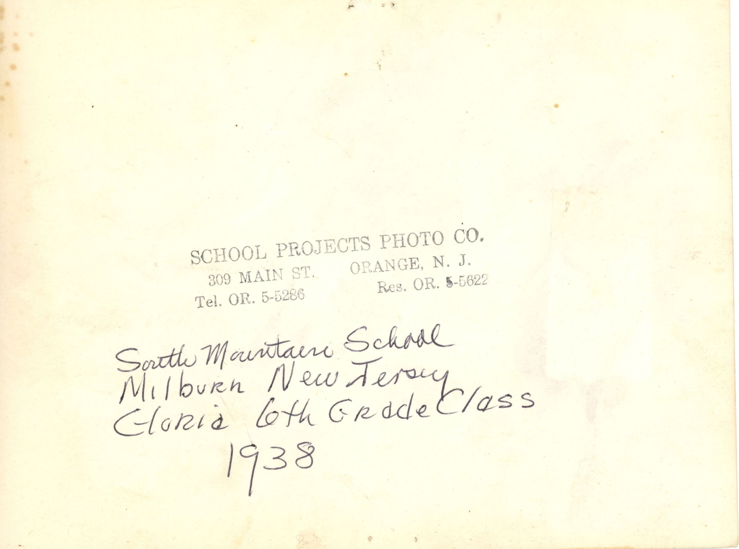Photograph of the South Mountain School 6th grade showing Gloria Bryant (50 Walnut Avenue, Millburn) as indicated by the X. This is the same photograph as 2006.017.001, which has Marilyn Ellwanger.