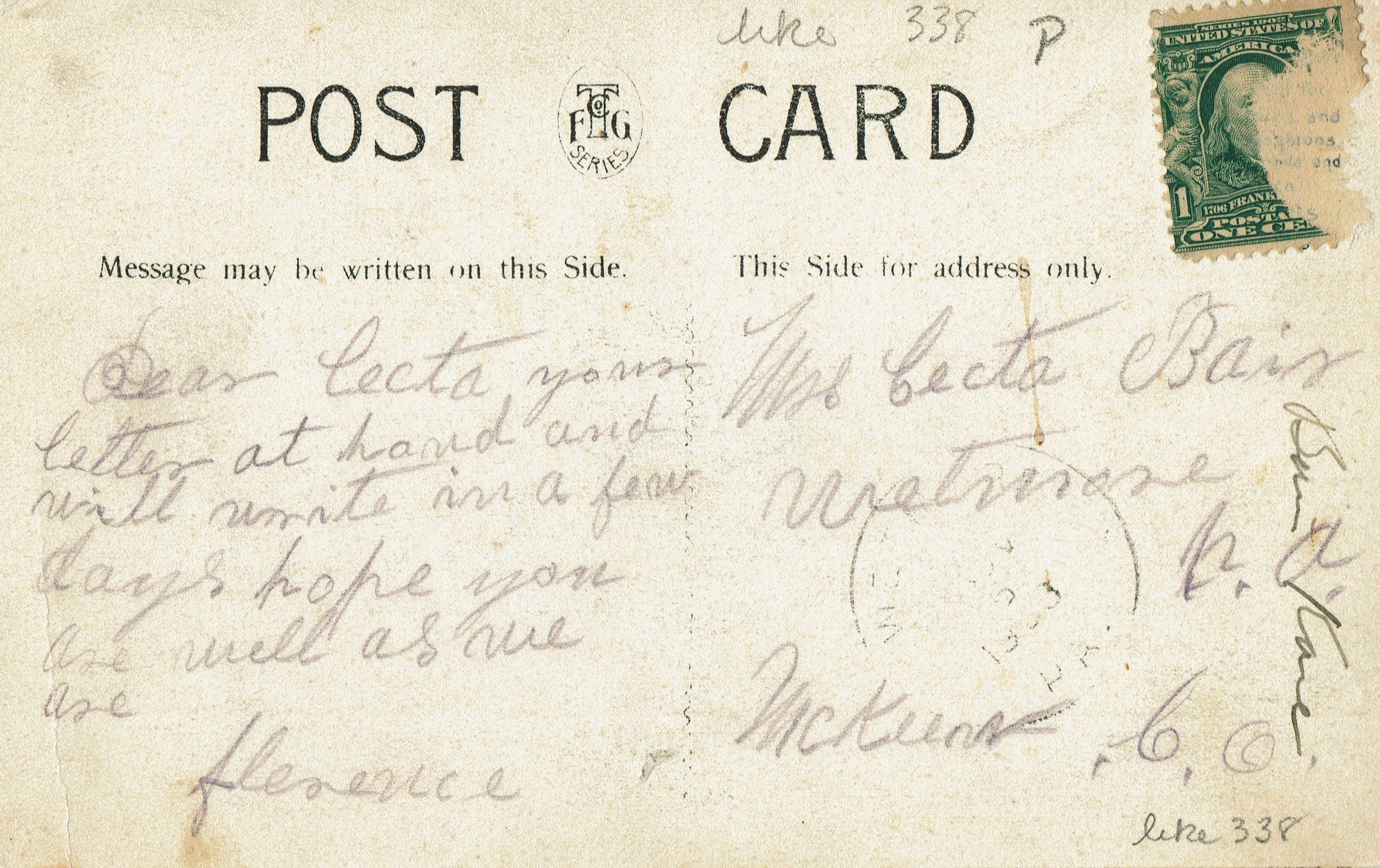 Two copies. One postally unused, second is postally used, postmark unclear-possibly 1908.Collection