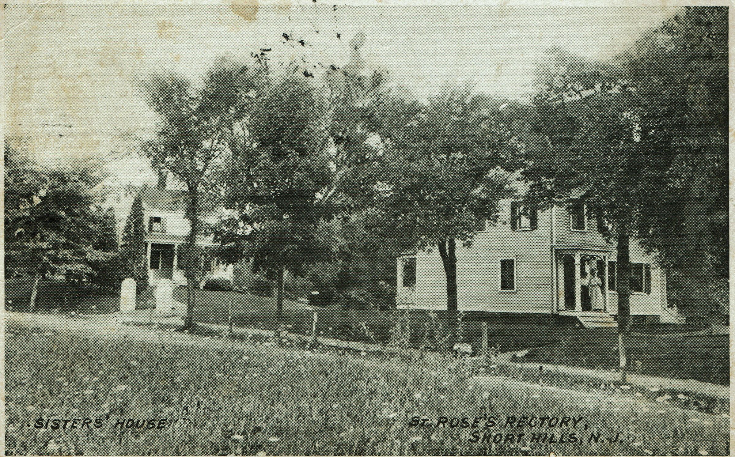 Postally used, B&W photographic postcard of The Sister's House and Rectory of St. Rose of Lima. Postmark is unclear. Card is addressed to Miss K. Ferguson, P.O. Box 332, Odell, Illinois.