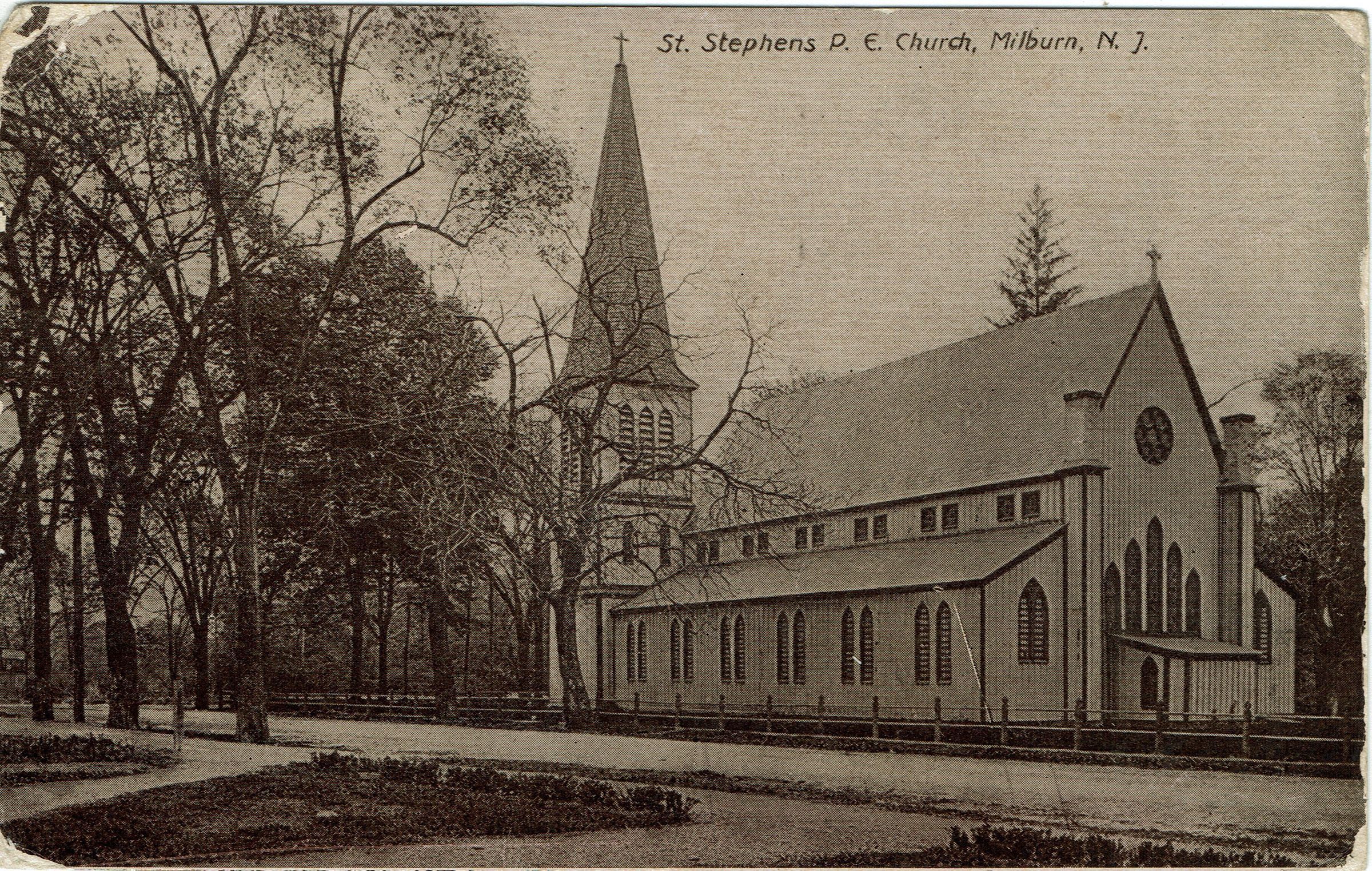 Postally used B&W photographic postcard of St. Stephens Protestant Episcopal Church, Millburn, NJ. Postmarked Millburn, March 25, 1912
