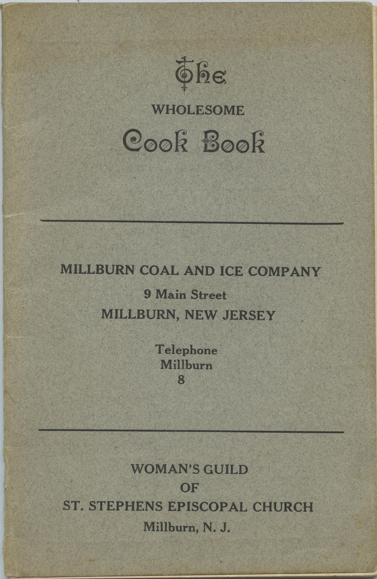 Ca. 1930, softcover, 44-page, fundraiser recipe cook book from the Woman's Guild of St. Stephens Episcopal Church in MIllburn NJ. The heather-green cover is detached from the book and is yellowed around all edges. Cover corners are bumped and there is light edgewear on the cover. The pages are all clean but show light overall yellowing. The age of the book is a guesstimate based upon evidence of when some of the stores were in business in Millburn, quite a few of which do not appear in the 1920 census, but the telephone numbers (such as "Millburn 776" or only "1047") seem to be earlier than 1930. The provenance seems to have become separated from the item, but it may have been purchased on eBay.Dimensions