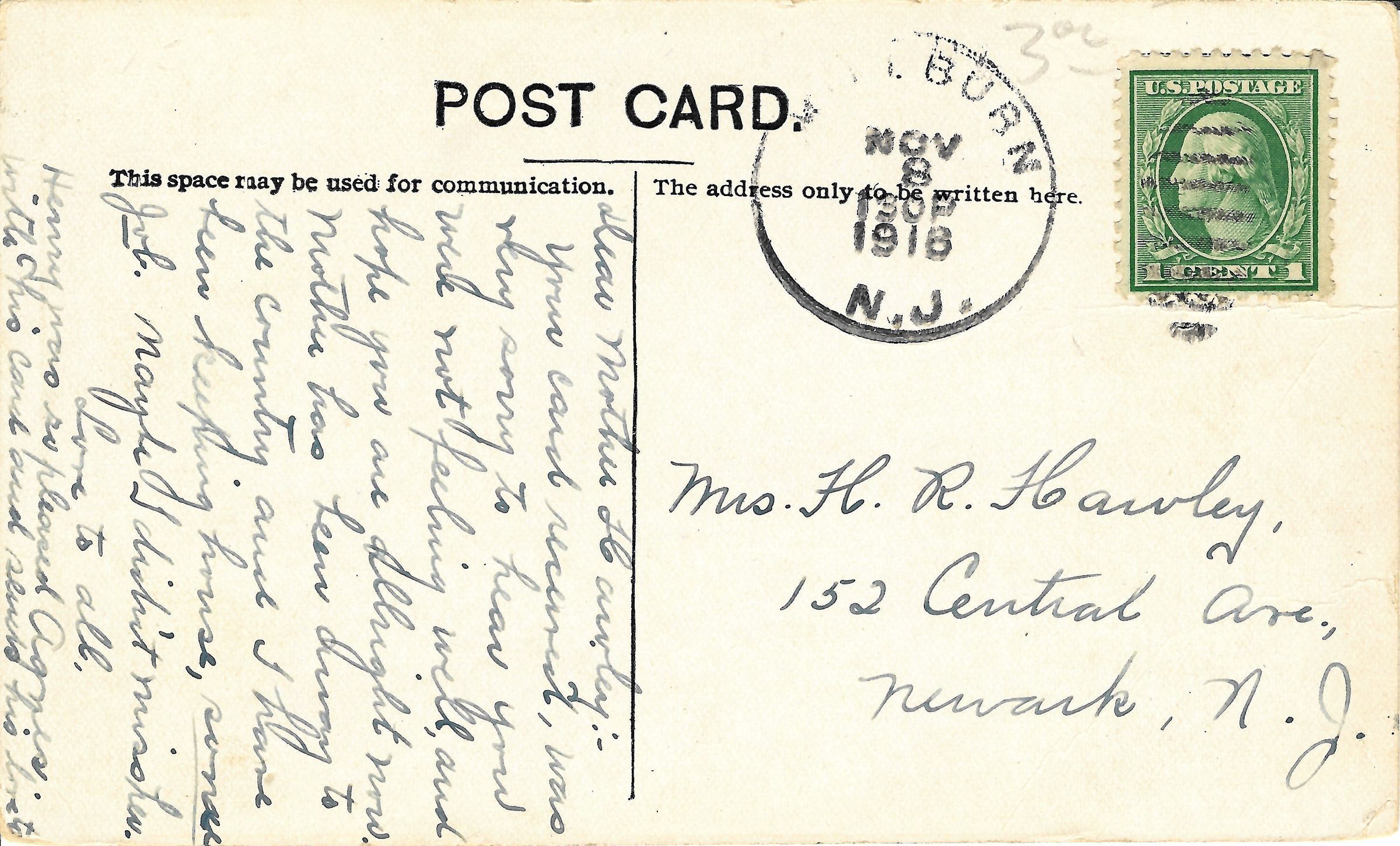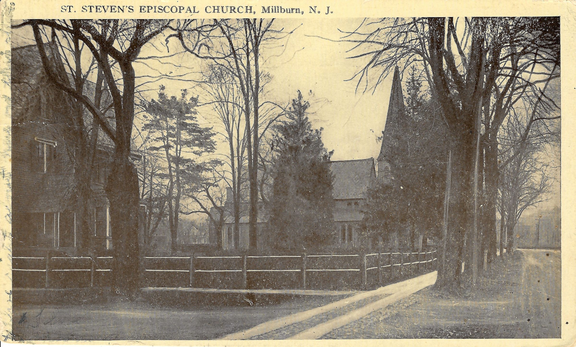 Used postcard of St. Stephen's Episcopal Church, Millburn, postmarked November 8, 1918. Postcard shows the church and the rectory.Acquisition