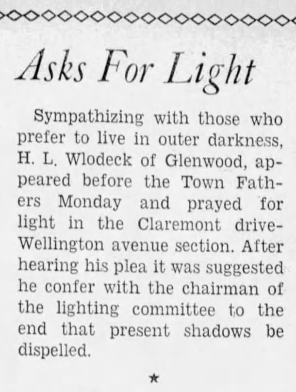 Street Lights: Street Light Controversy in Glenwood Section, 1937-8Entry/Object ID