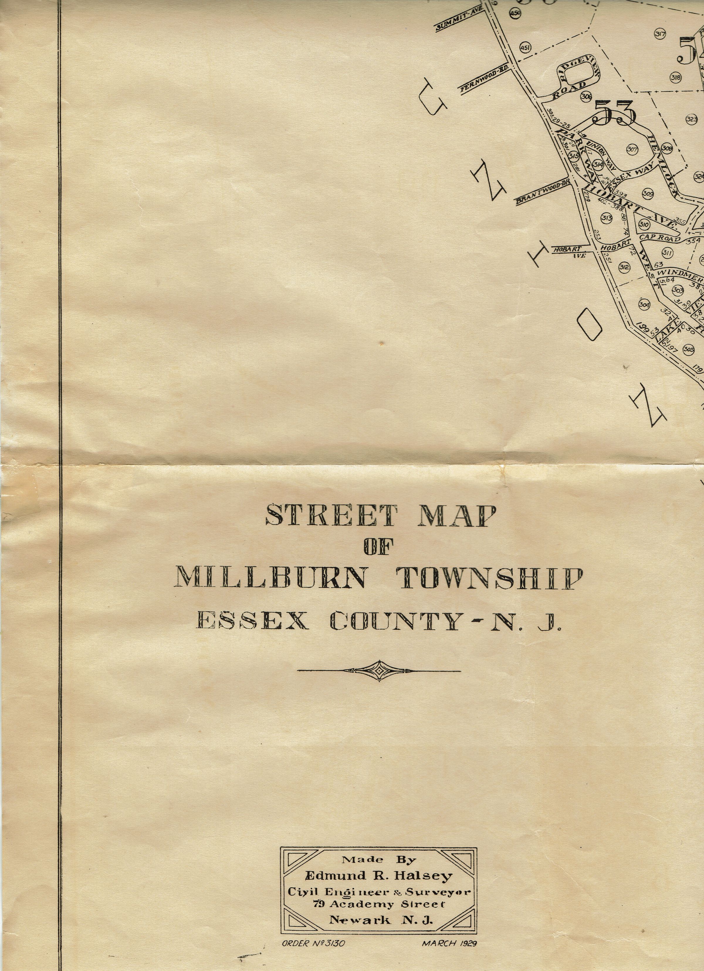 Street Map of Millburn Township, Essex County, NJ by Edmund Halsey, March 1929.Acquisition