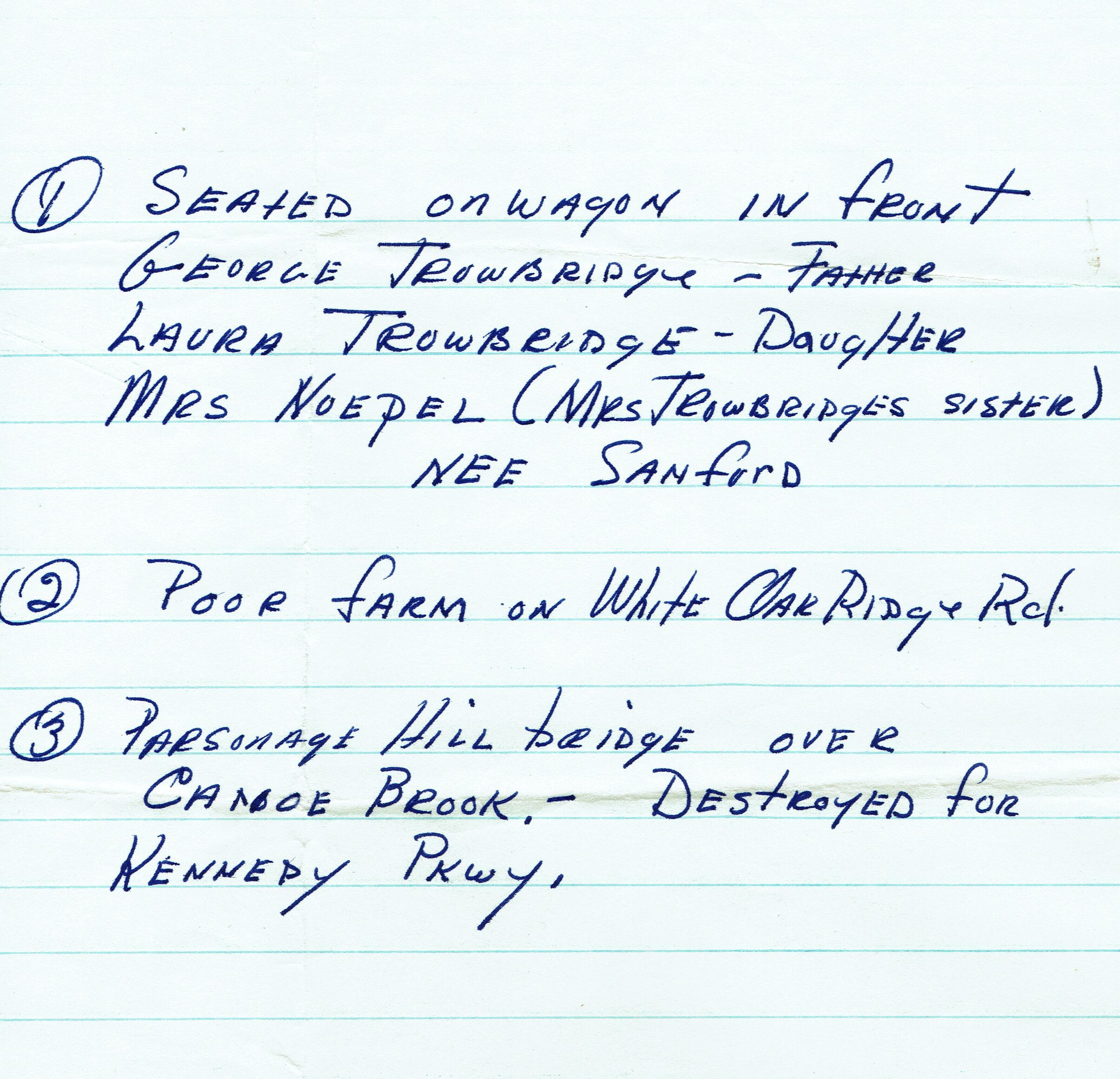Letter from Harriet Stryker-Rodda to Fran Land regarding photographs she was donating to the Millburn-Short Hills Historical Society. The photographs show the Trowbridge farm and Tamakwa Campfire Girls from Arlington, N.J. Letter and photographs were in an envelope sent to Owen Lampe from William Ross in 1982.Acquisition