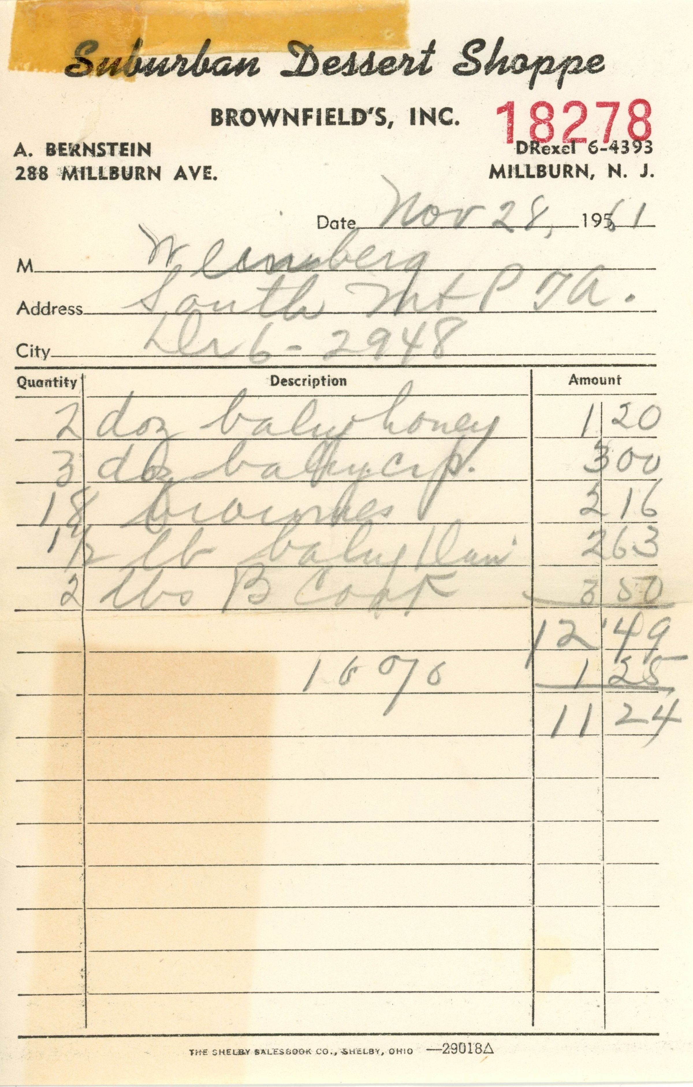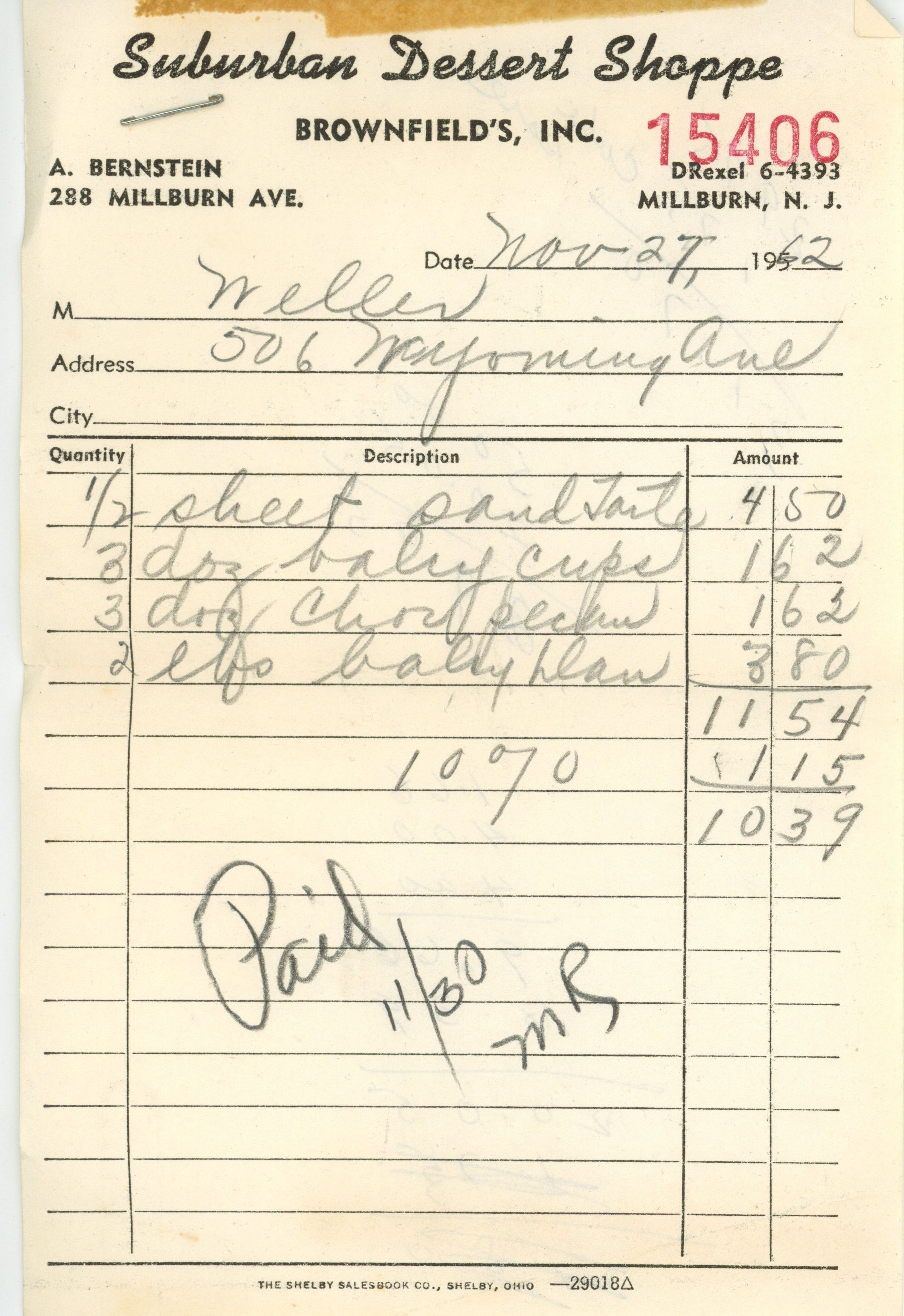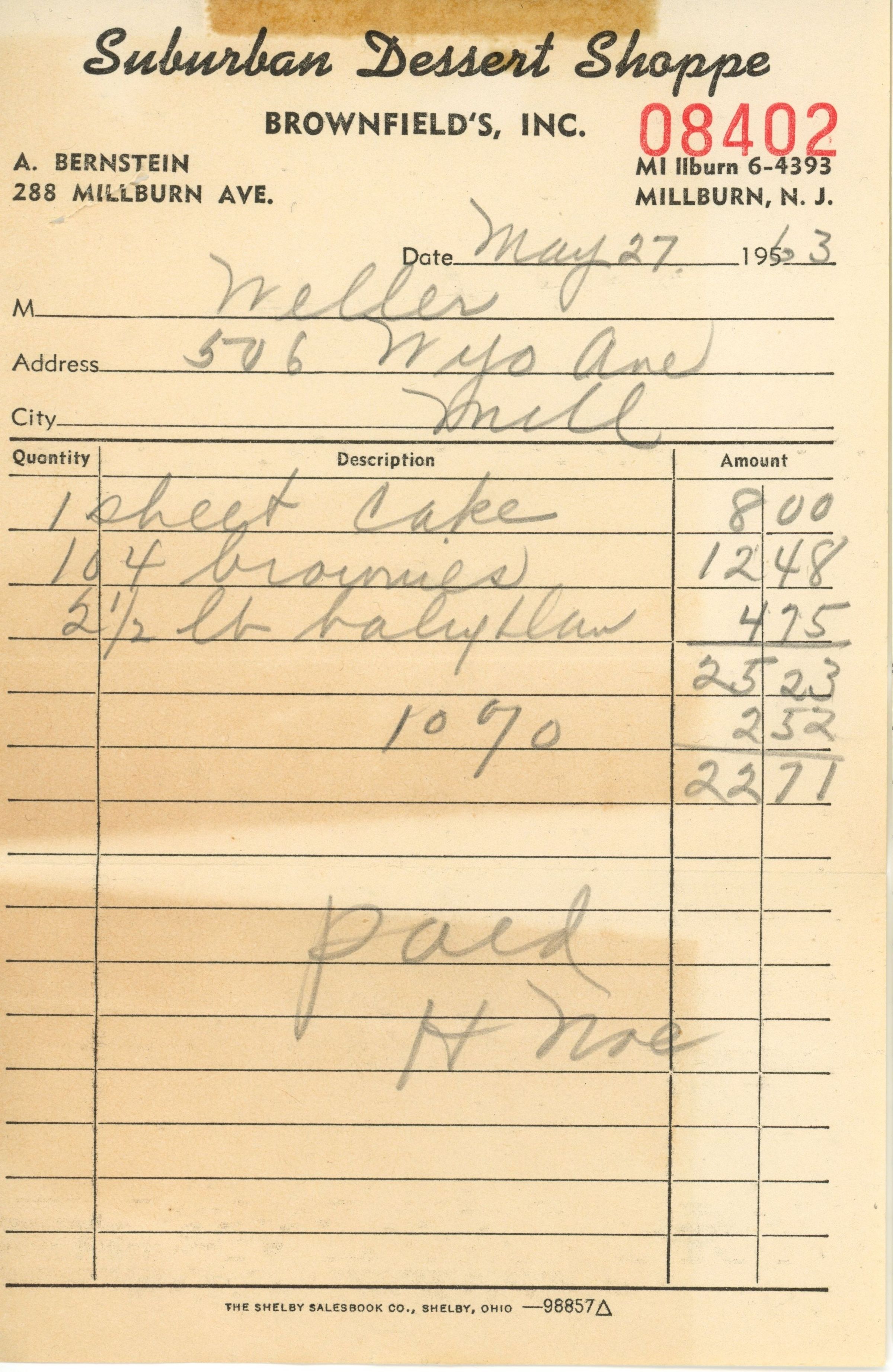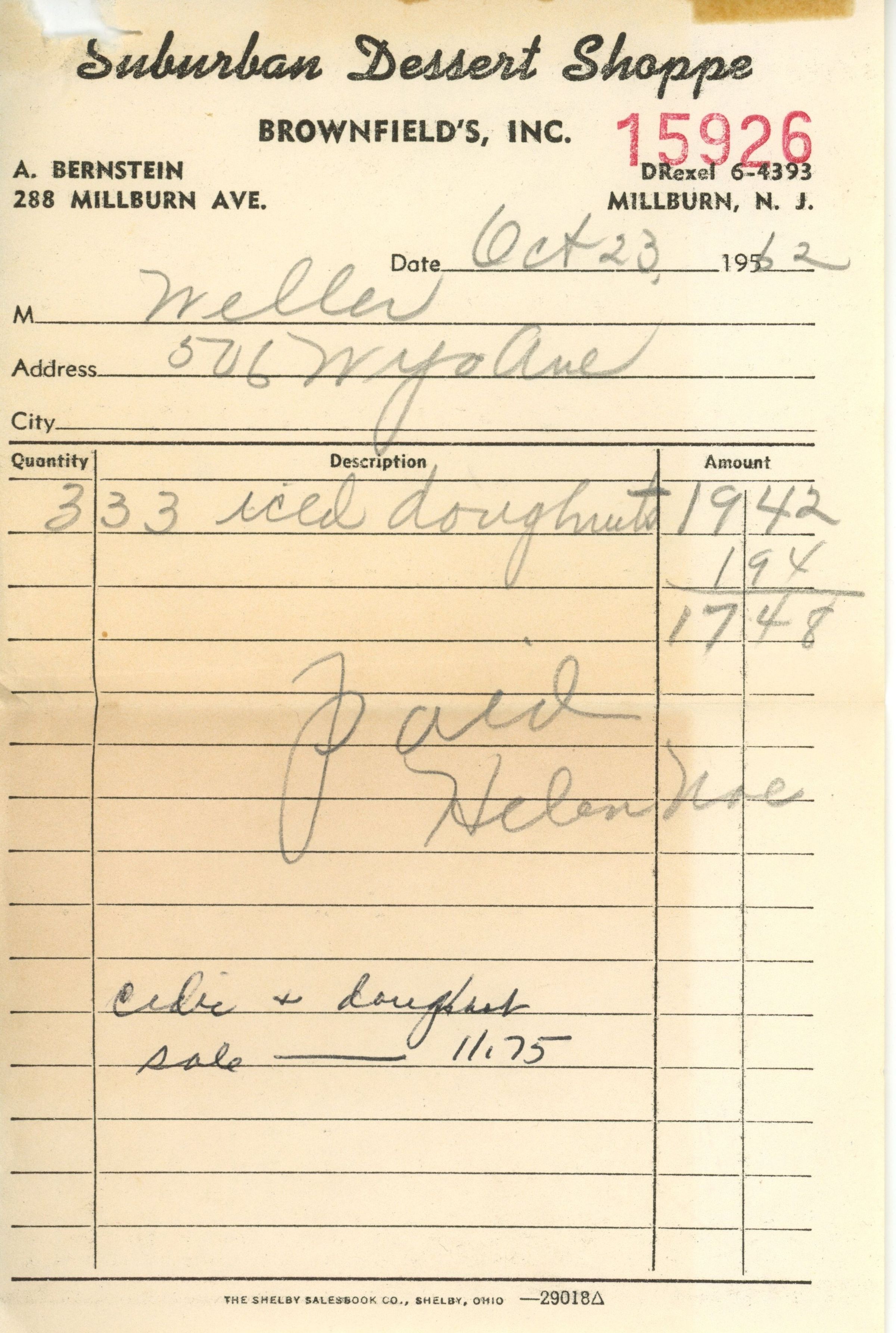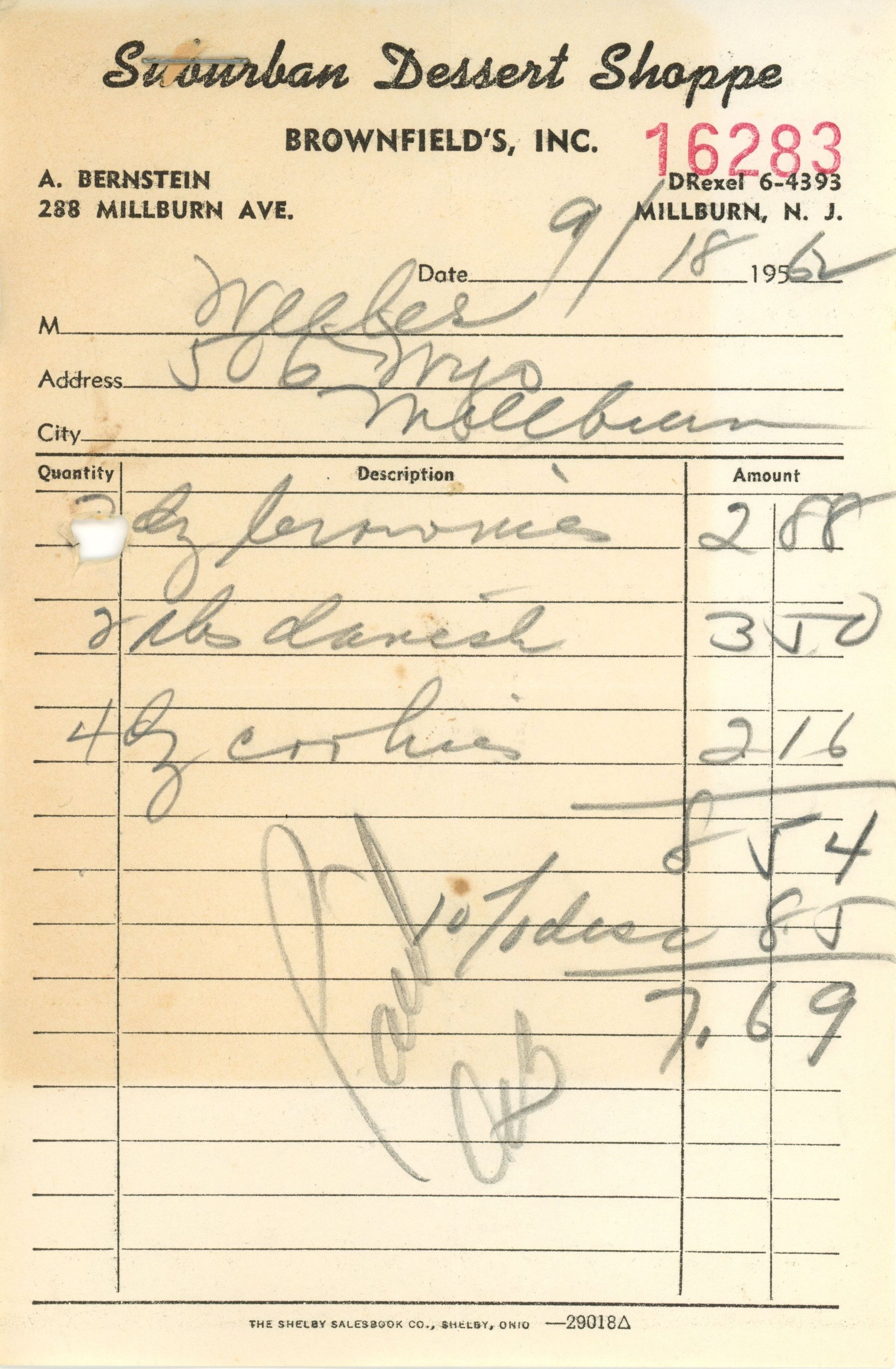 Suburban Dessert Shoppe: Receipts for PTA Refreshments, 1962-1967Entry/Object ID