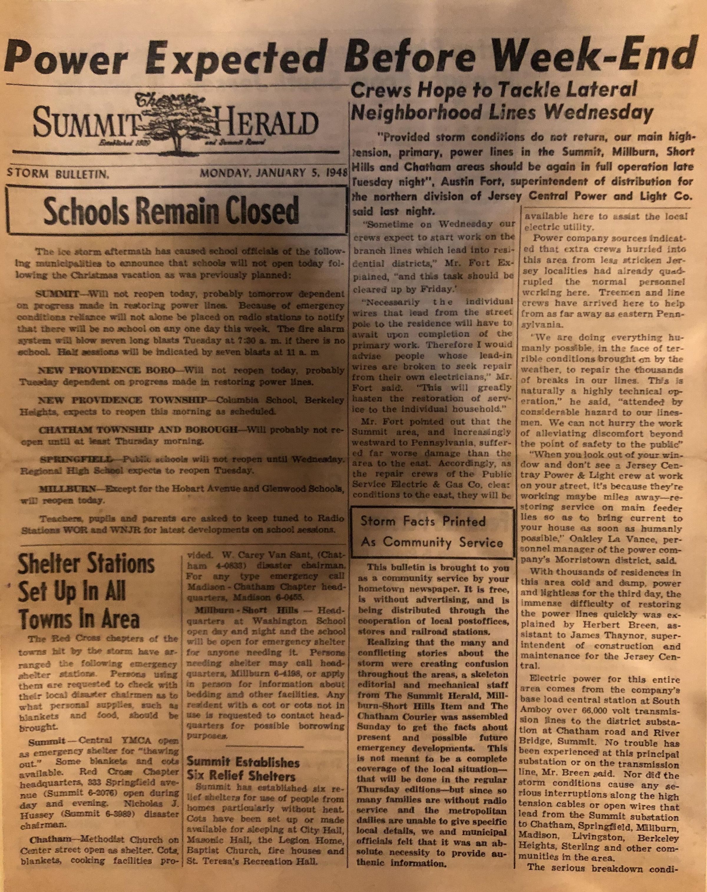 Summit Herald, Ice Storm Bulletin, January 5, 1948