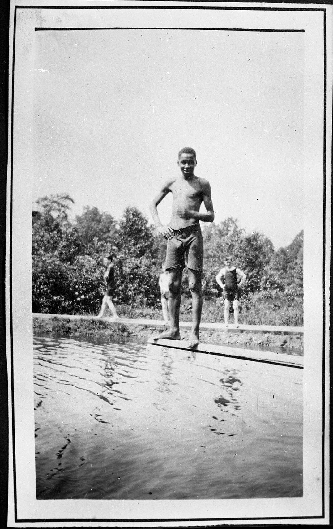 Taylor Park: Boy on Diving Board, at Playground Pool, c. 1915-16