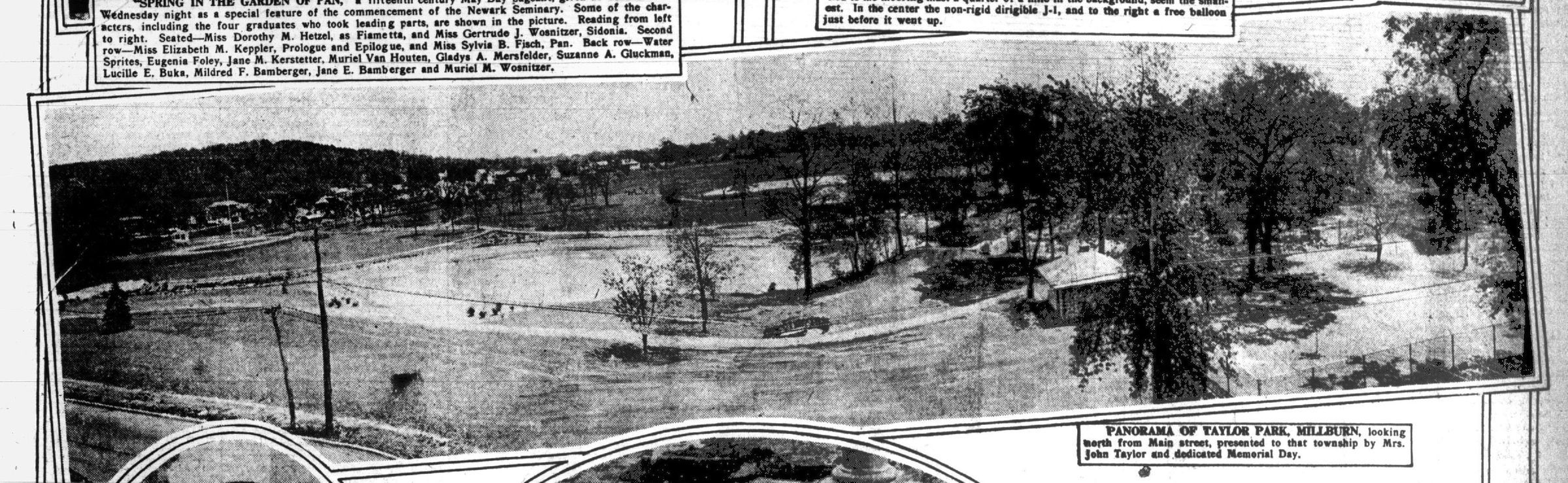 Single-sheet program for the May 30, 1924 dedication of Taylor Park to Millburn. The front and back covers separated and were reattached when donated to the historical society. Light overall soiling, specially on covers/outside.Acquisition