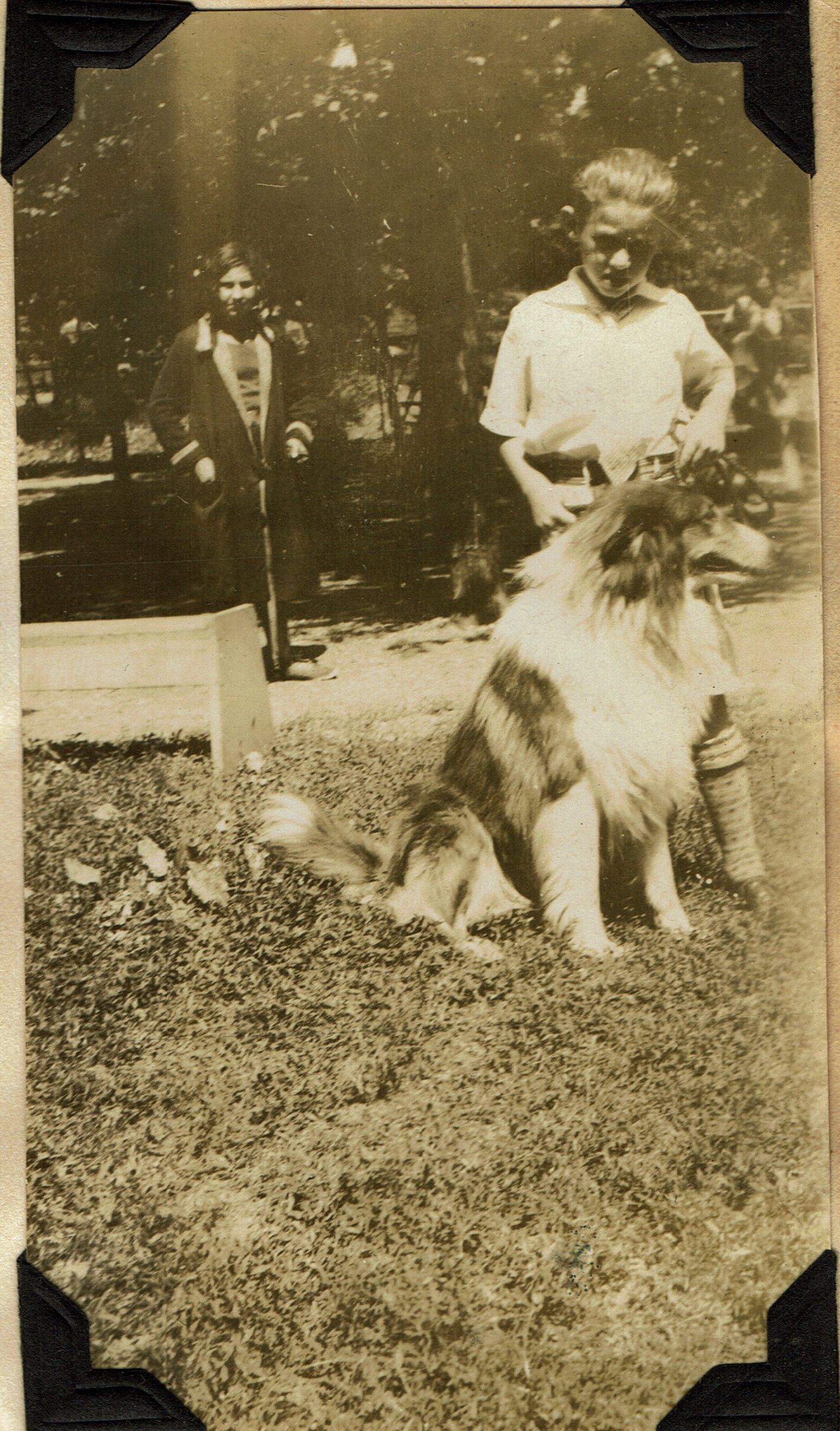 Photograph of Edward Schiller with his collie, who won first place as the Most Beautiful Pet in the show, at the Monday, June 23, 1930 Taylor Park Playground Opening Day Festivities and Pet Show.Photograph Details