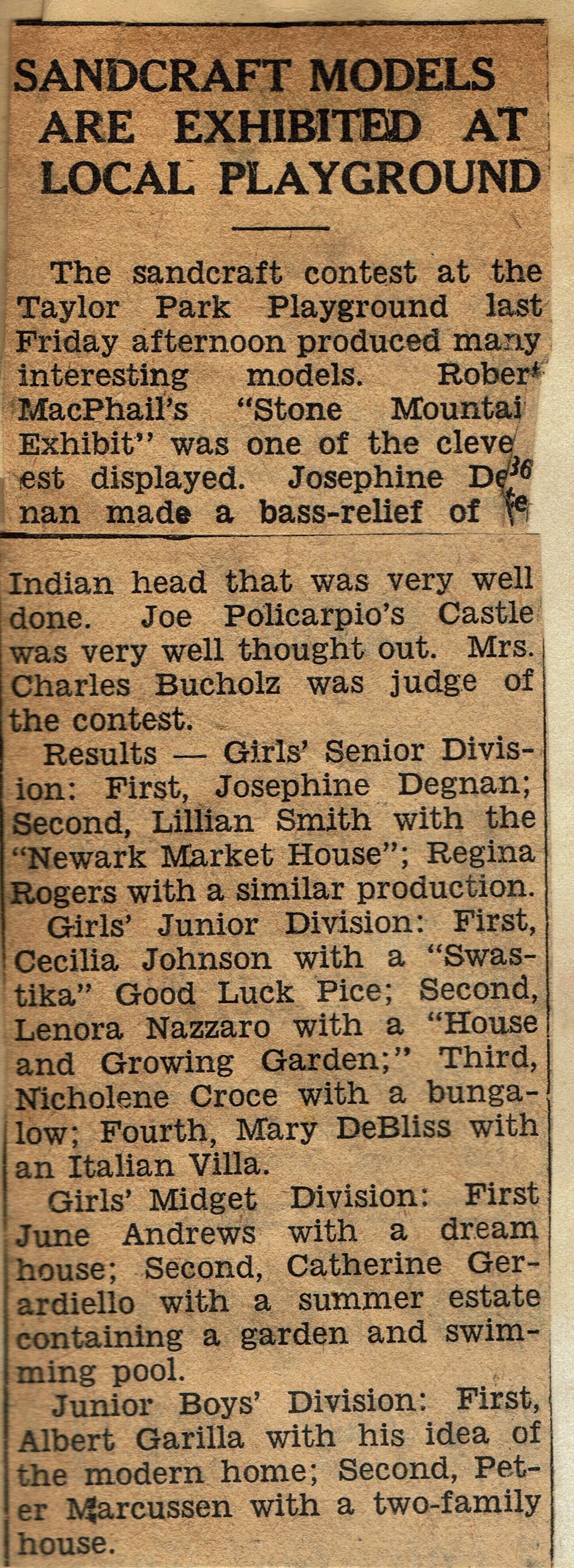 Taylor Park: Sandmodeling Contest, 1930Entry/Object ID