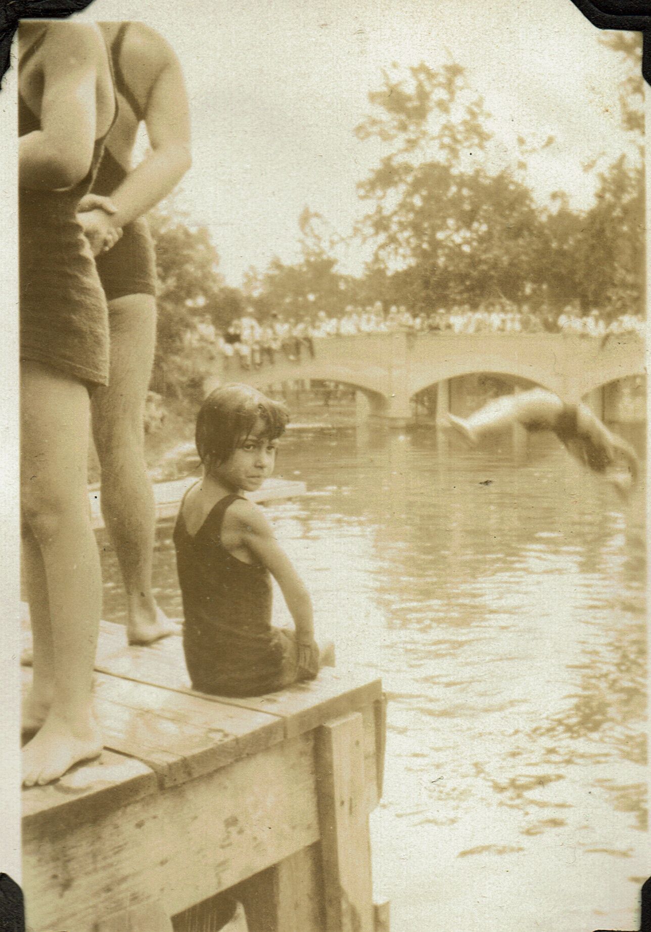 Photograph of 12 year-old George Dickinson, who took first place with his back dive in the August 18, 1930 swim meet in Taylor Park.