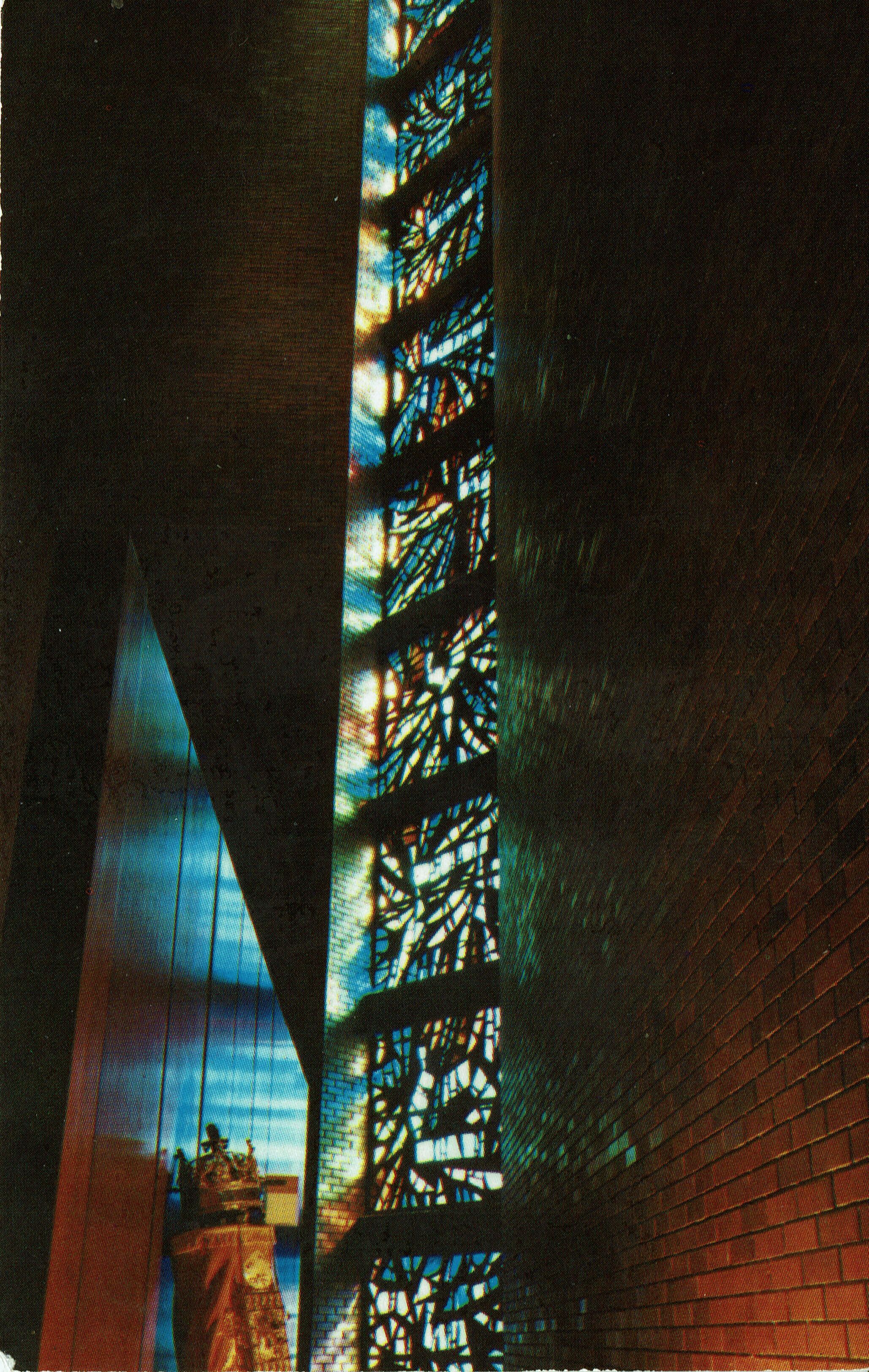 The Torah and the Great Window of the Sanctuary. The Stained glass window consists of 10 panels, each bearing one of the first 10 letters of the Hebrew alphabet, a symbol of the Ten Commandments.Collection