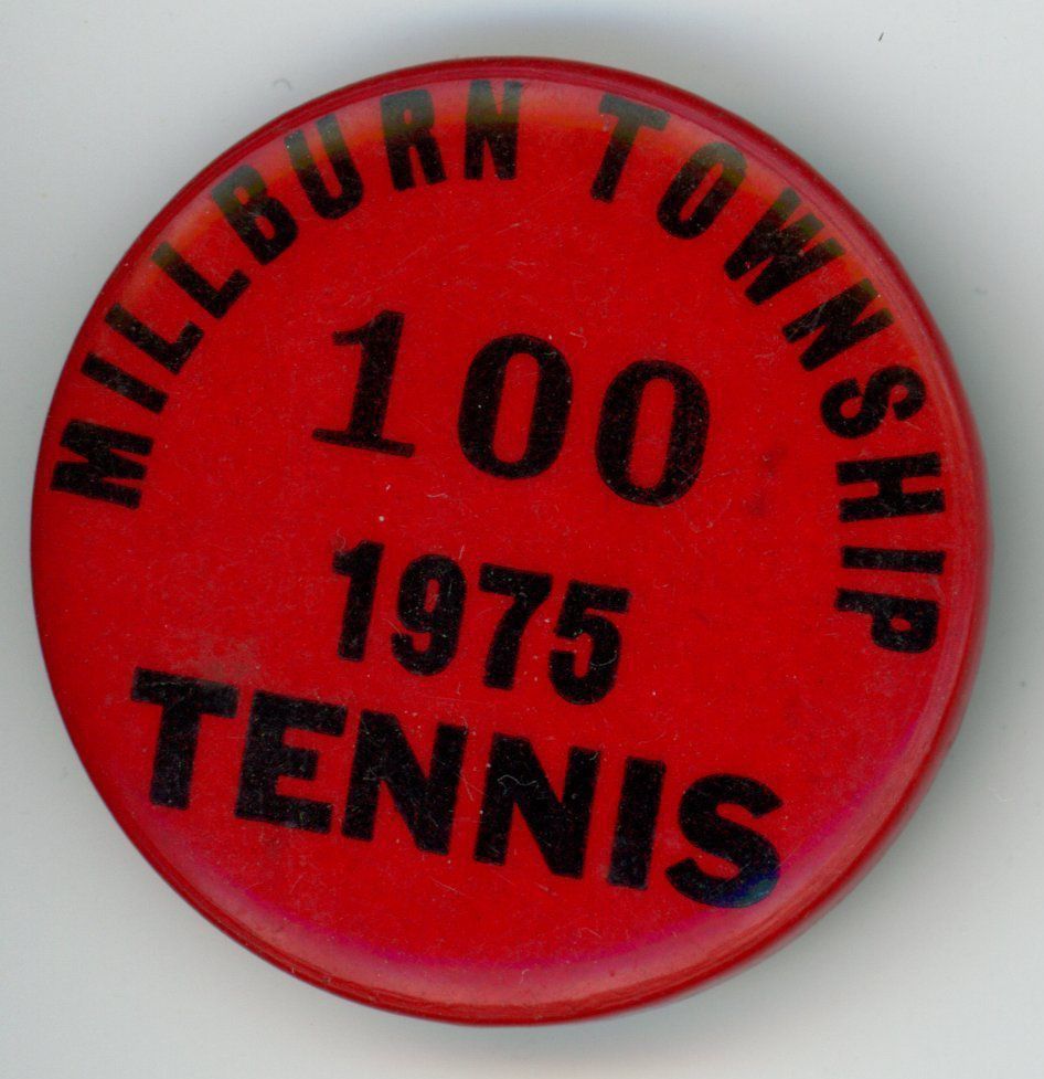 Millburn Township Pin Back Button from the Recreation Department for use of the Township's the Tennis Courts in 1975.Acquisition