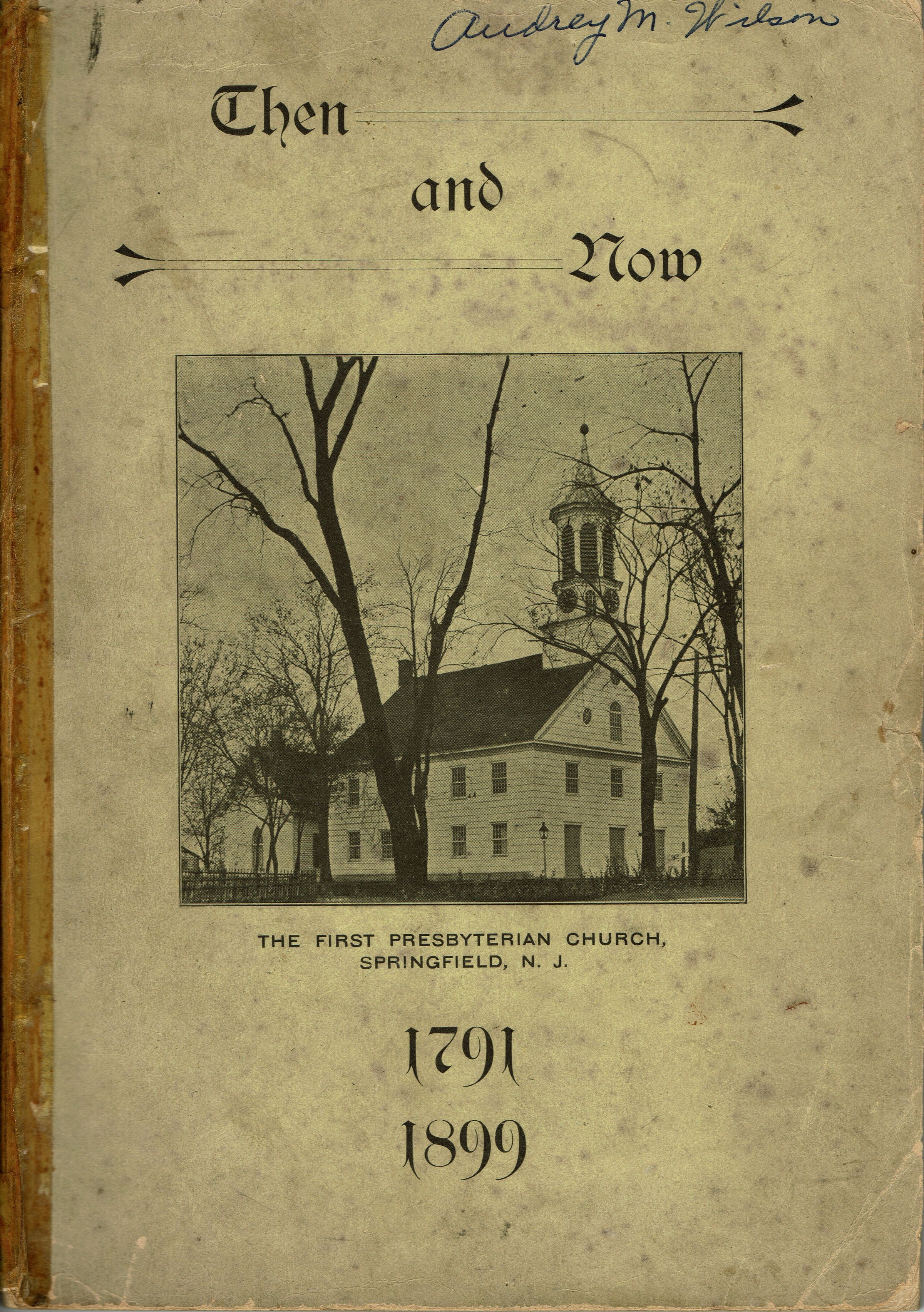Then and Now: A Work of History and Every Day Science Compiled and Edited by the Ladies of the Springfield Presbyterian Church." Short-Hills, NJ: Short-Hills Item Press, 1899. 86 pp. Booklet featuring a historical discourse in honor of the centennial of the founding of the First Presbyterian Church, Springfield, which was delivered on July 16, 186 by Reverend Henry W. Teller, a discussion of the 1899 renovation, a short discussion of the Wyoming Presbyterian Church, a description of Short Hills. The remainder of the booklet consists of recipes from 1899 and advertisements primarily from Springfield and Short Hills businesses.Acquisition