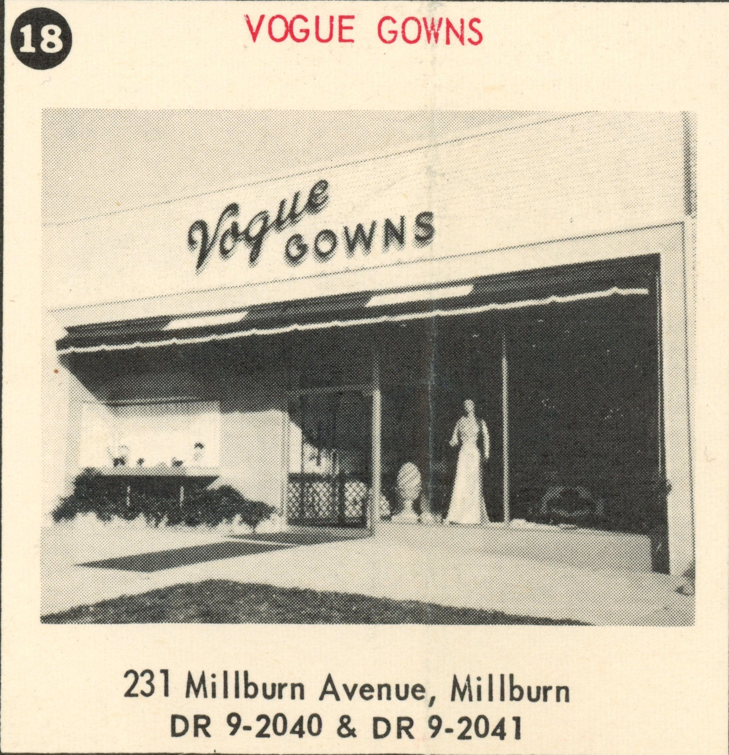 Vogue Gowns, 231 Millburn Avenue, 1955Entry/Object ID