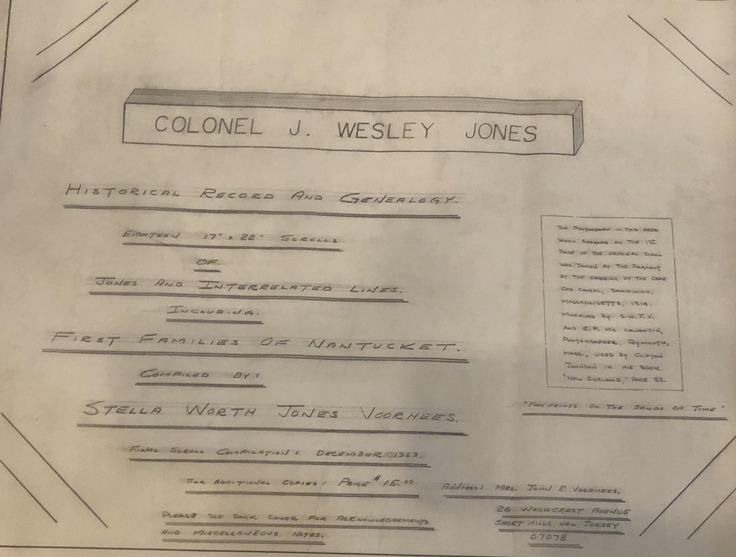 Historical Record and Genealogy of Colonel J. Wesley Jones consisting of 18 x 22" handwritten scrolls. Completed December 1963.