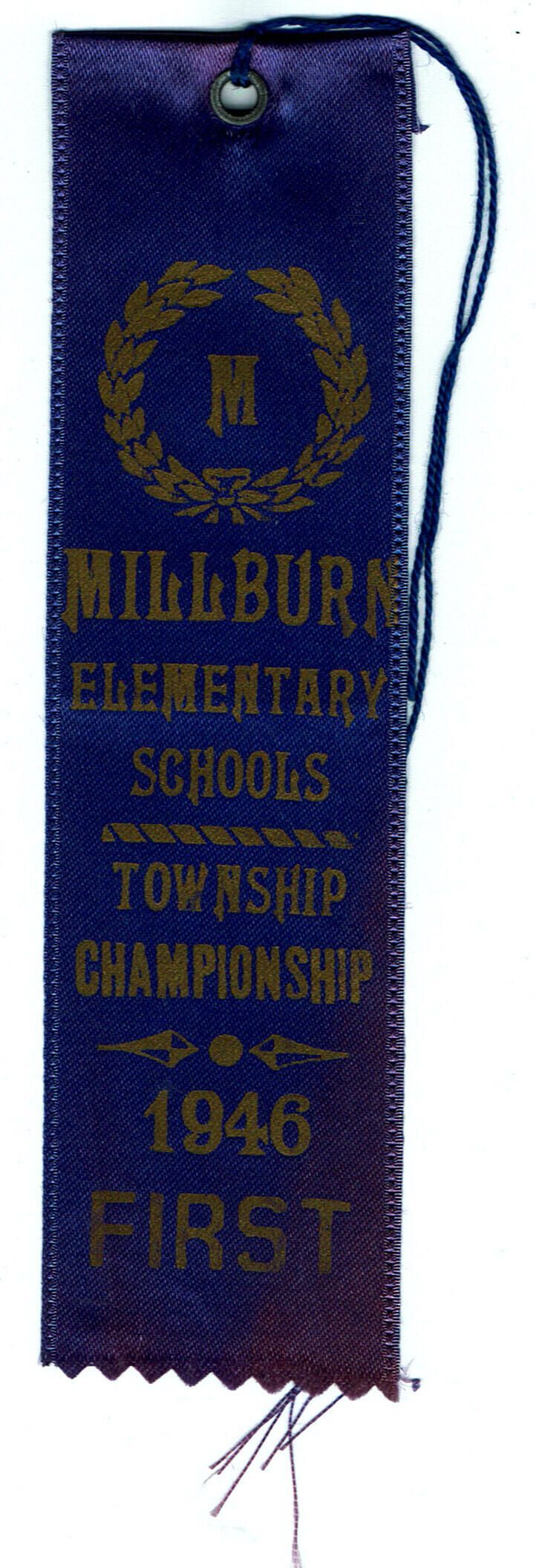 First Place Blue Ribbon from the 1946 Millburn Elementary Schools Township Championship awarded to Peter Vrahnos in the Softball League representing 6th grade at Washington School.Acquisition