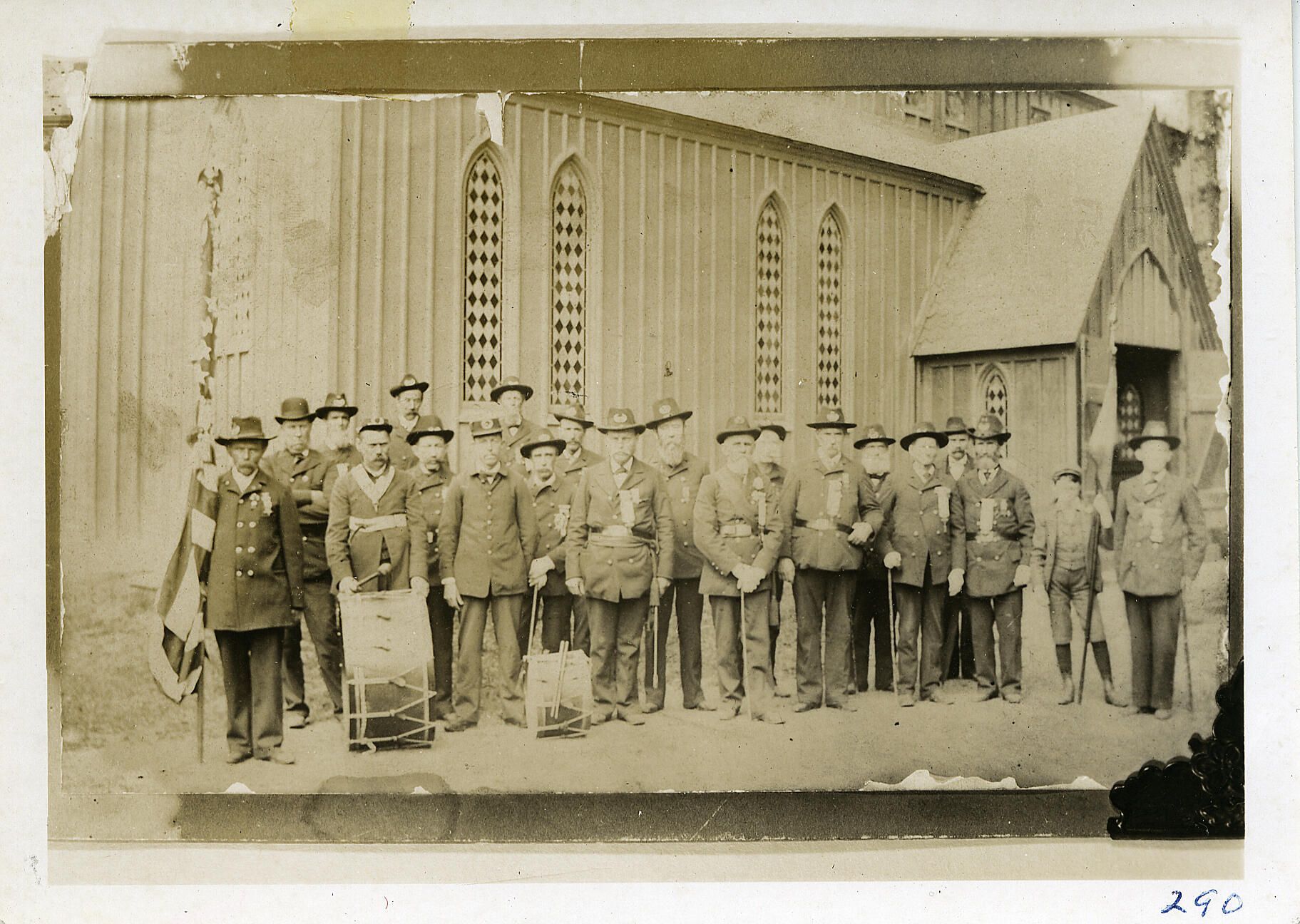 Wade G.A.R.: Members of the Edward H. Wade Post of the Grand Army of the Republic outside St. Stephen's Church, 1897Description