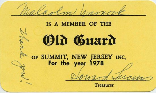 Yellow card stock membership card for the Old Guard of Summit, New Jersey for the year 1978. No signs of damage.Acquisition