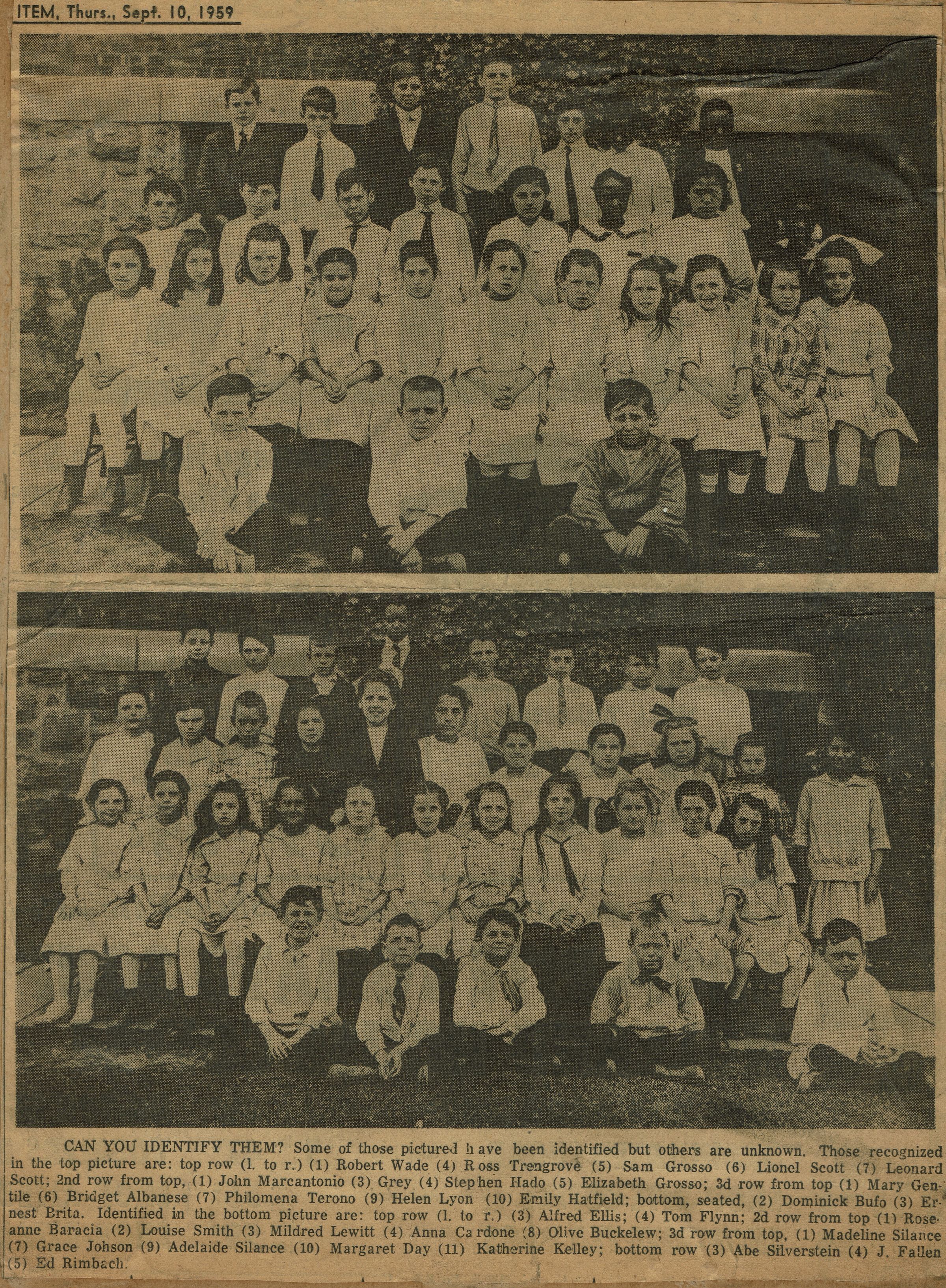 Photographs of students from the Washington School, c. 1910-20, which appeared in the Millburn-Short Hills Item, September 10, 1959. The photographs were among 30 pictures preserved by Howard R. Lyon and donated to the Millburn Historical Committee in time for the Centennial Celebration. The photographs accompany an article by Marian Meissner asking for help to identify the sitters.Acquisition