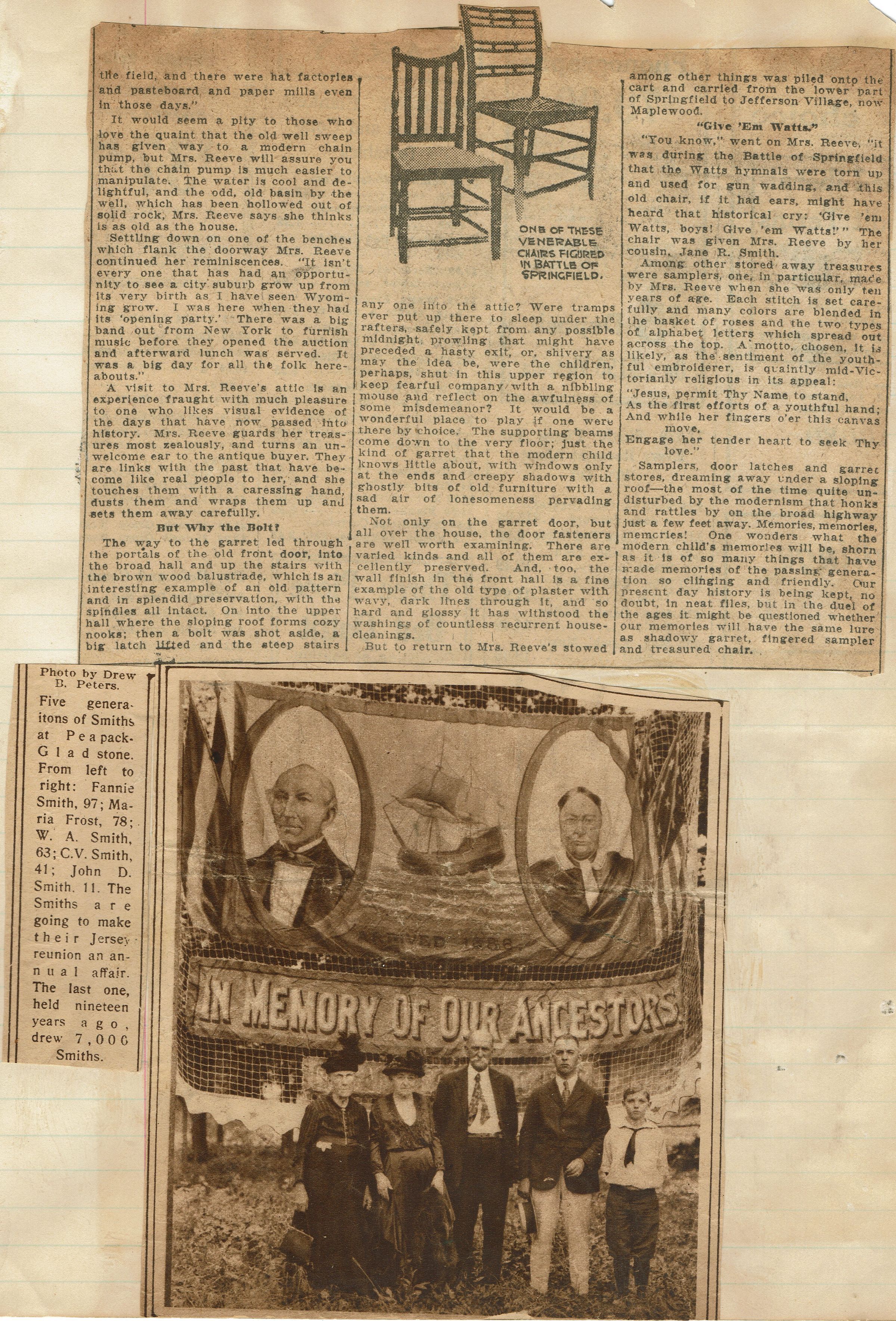 and on the second page there is a photograph showing 5 generations of the Smith family.Acquisition