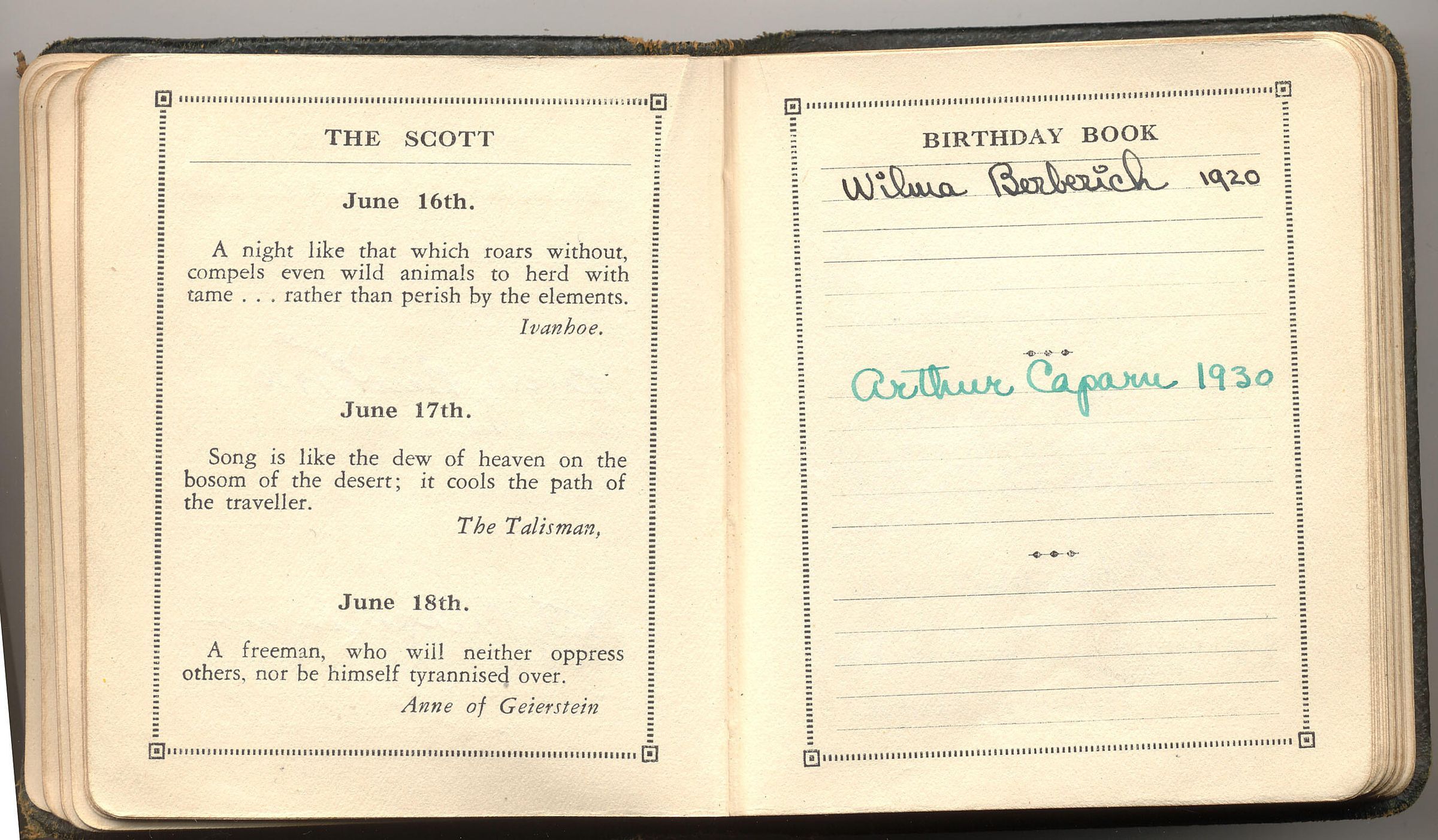 WOR Chapel Birthday Book, Arthur Caparn's name